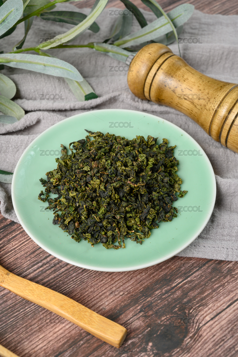 桌面上的盘子里干爽清香的铁观音