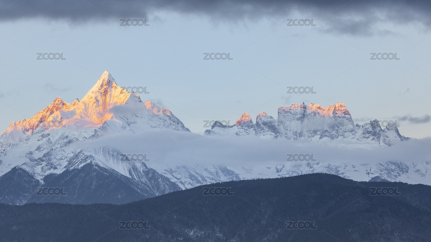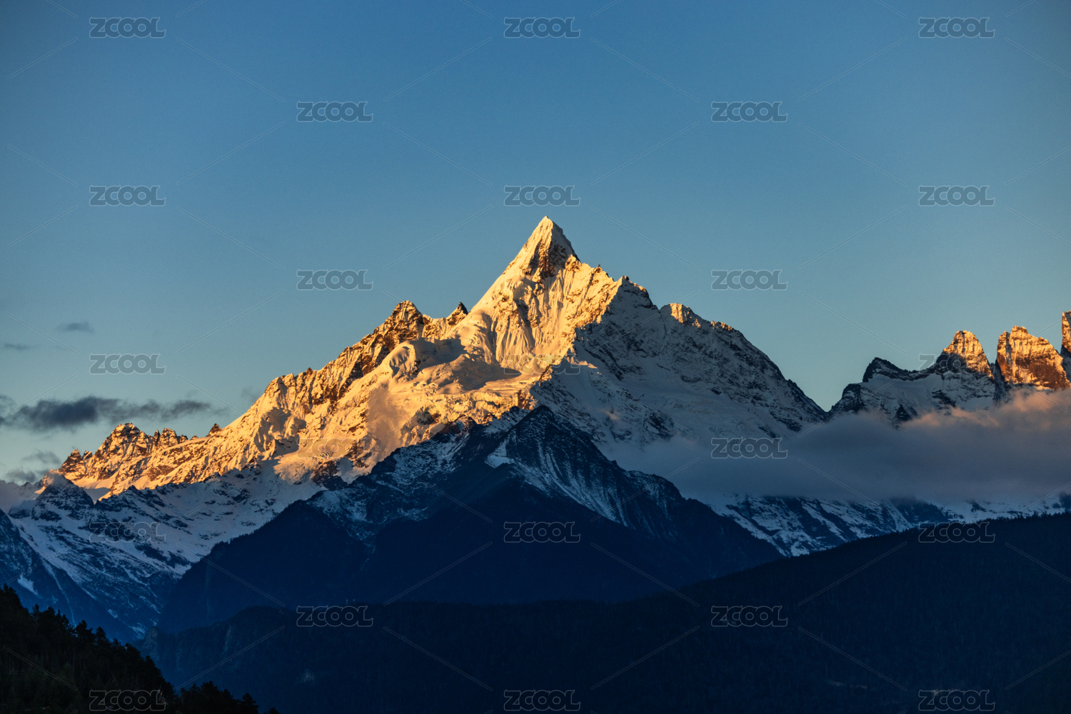 中国云南德钦梅里雪山清晨日照金山
