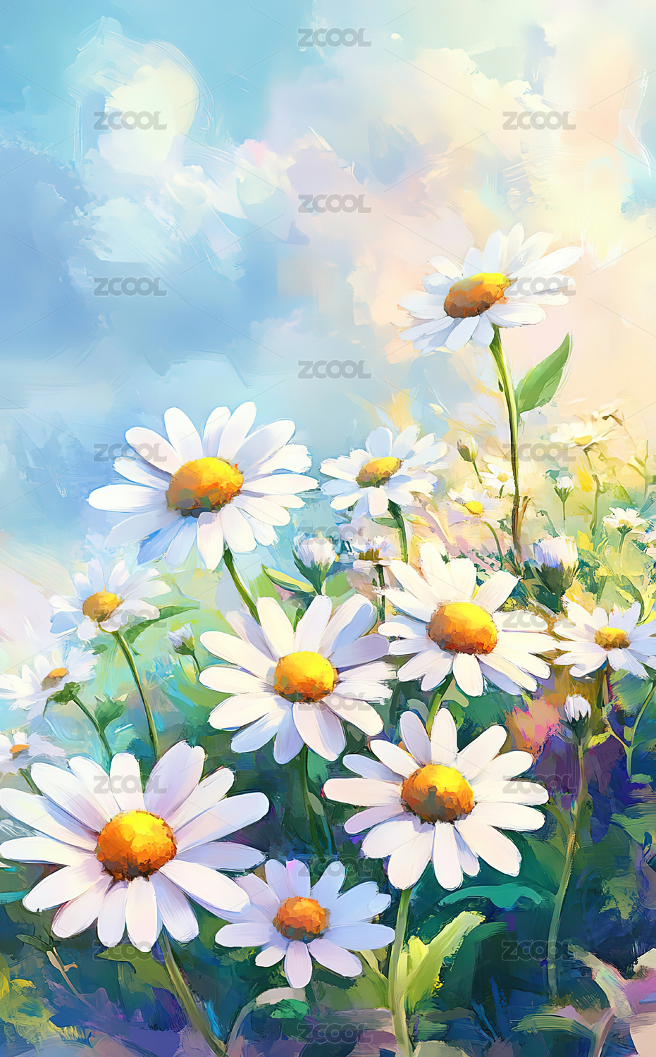 雏菊盛放的晴朗天空景象