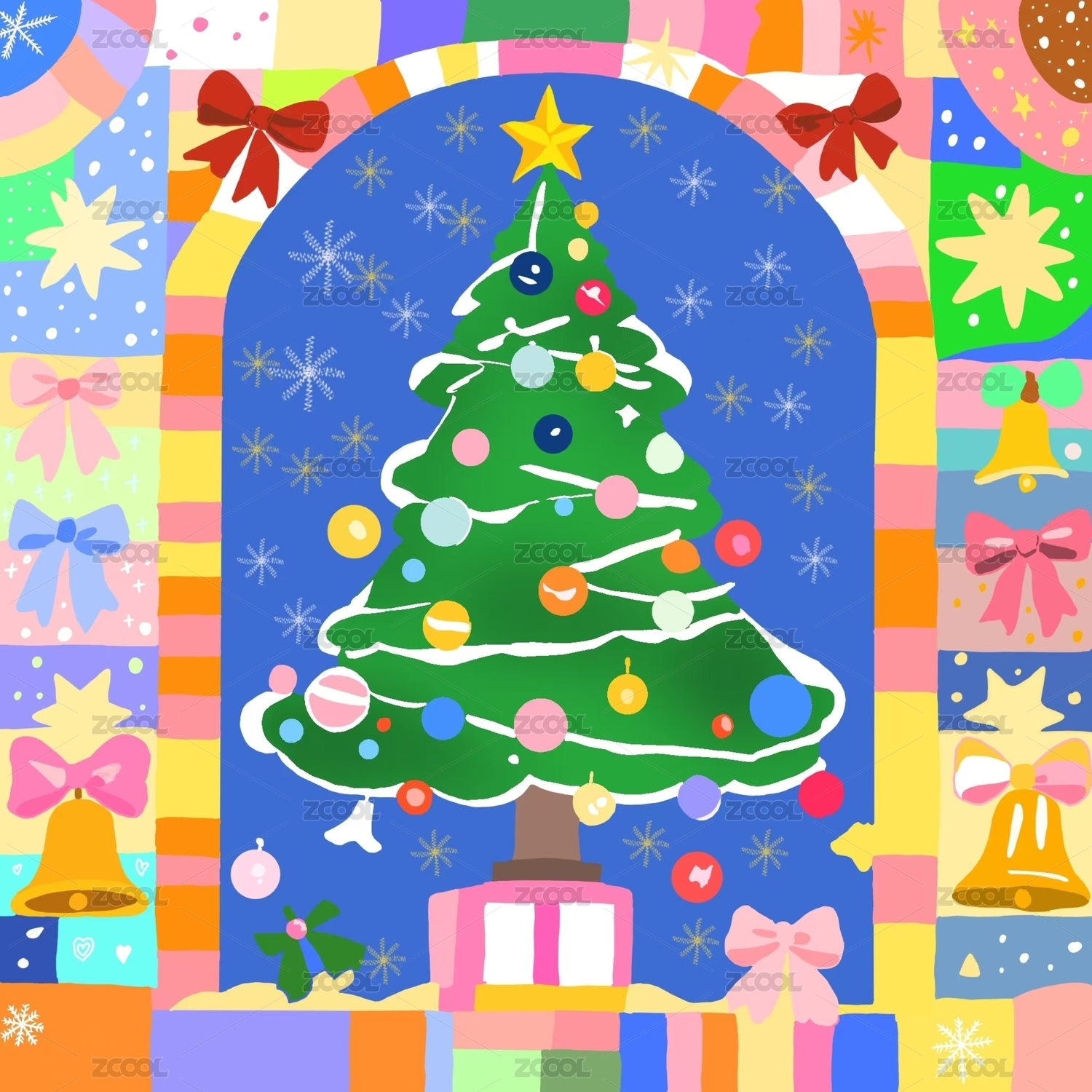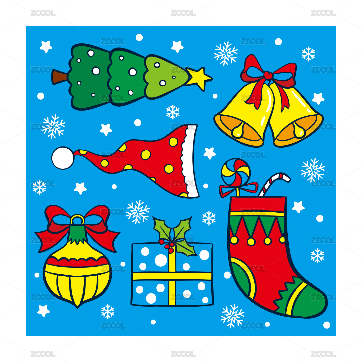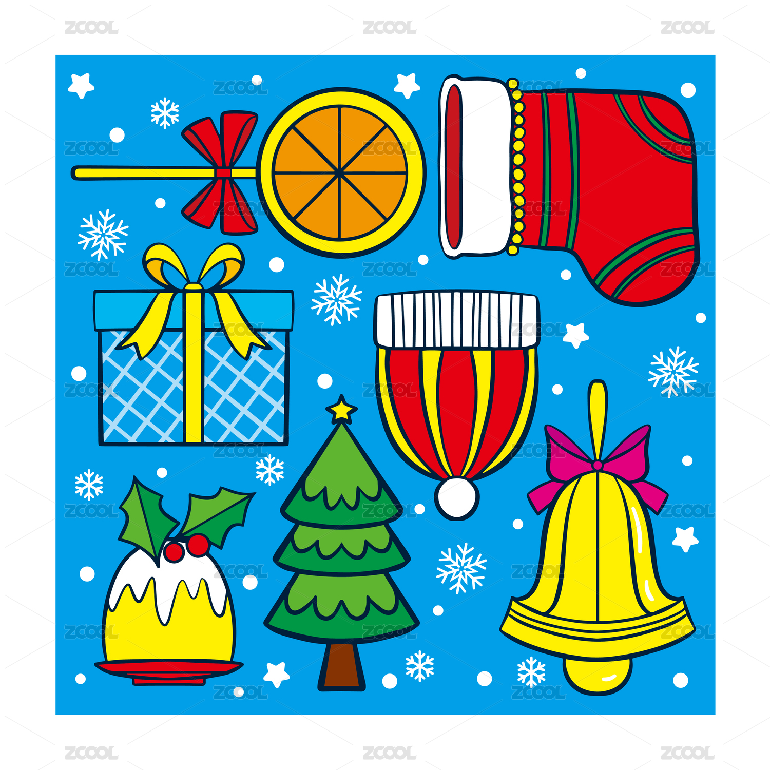 手绘圣诞矢量元素圣诞树姜饼圣诞果