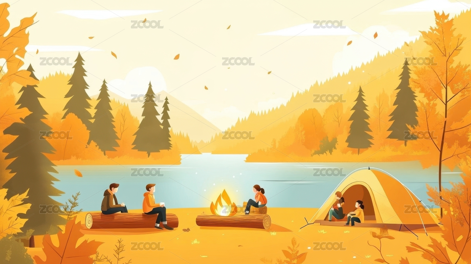 秋天秋游立秋秋分户外活动运动卡通漫画插画