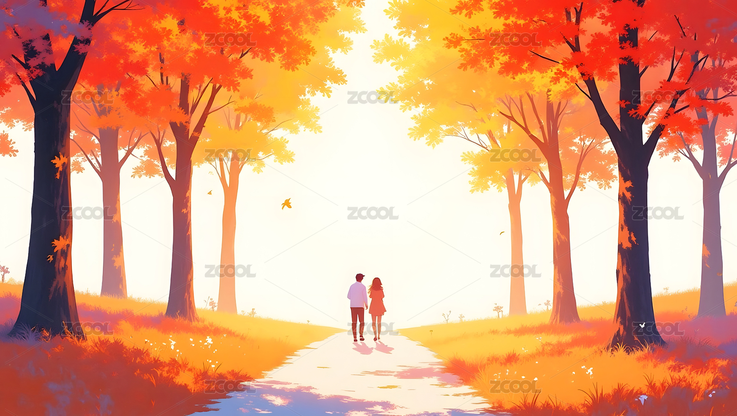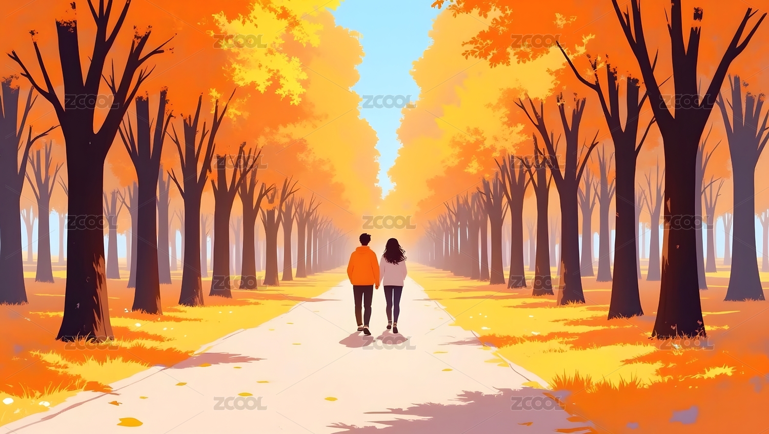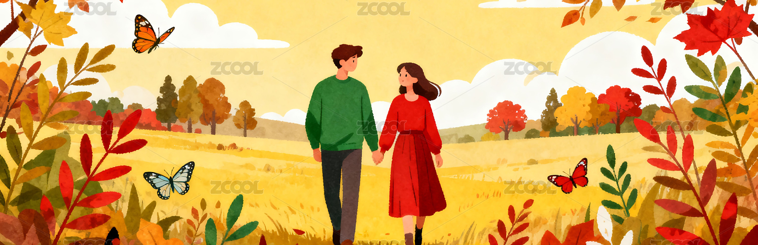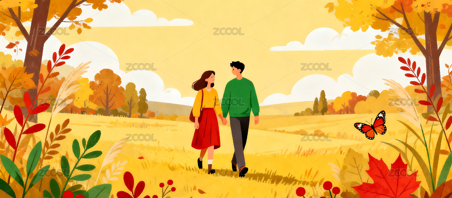 秋天秋游立秋秋分户外活动运动卡通漫画插画