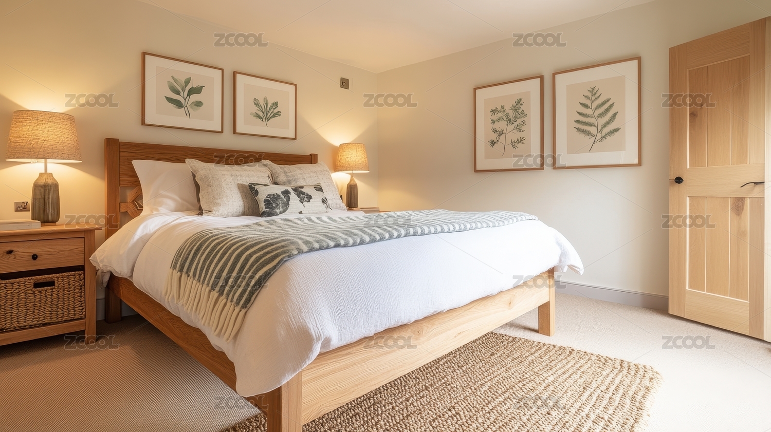 卧室,室内设计,舒适,温馨,床,床头柜,藤编,米色,家居装饰,现代风格