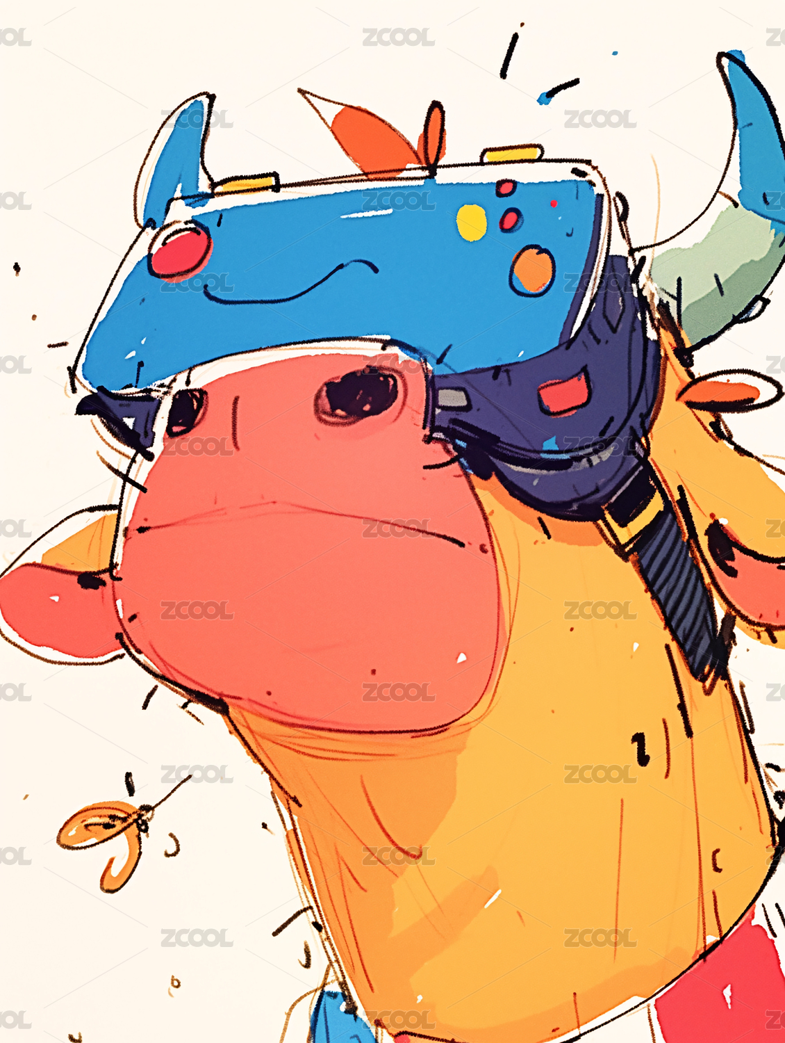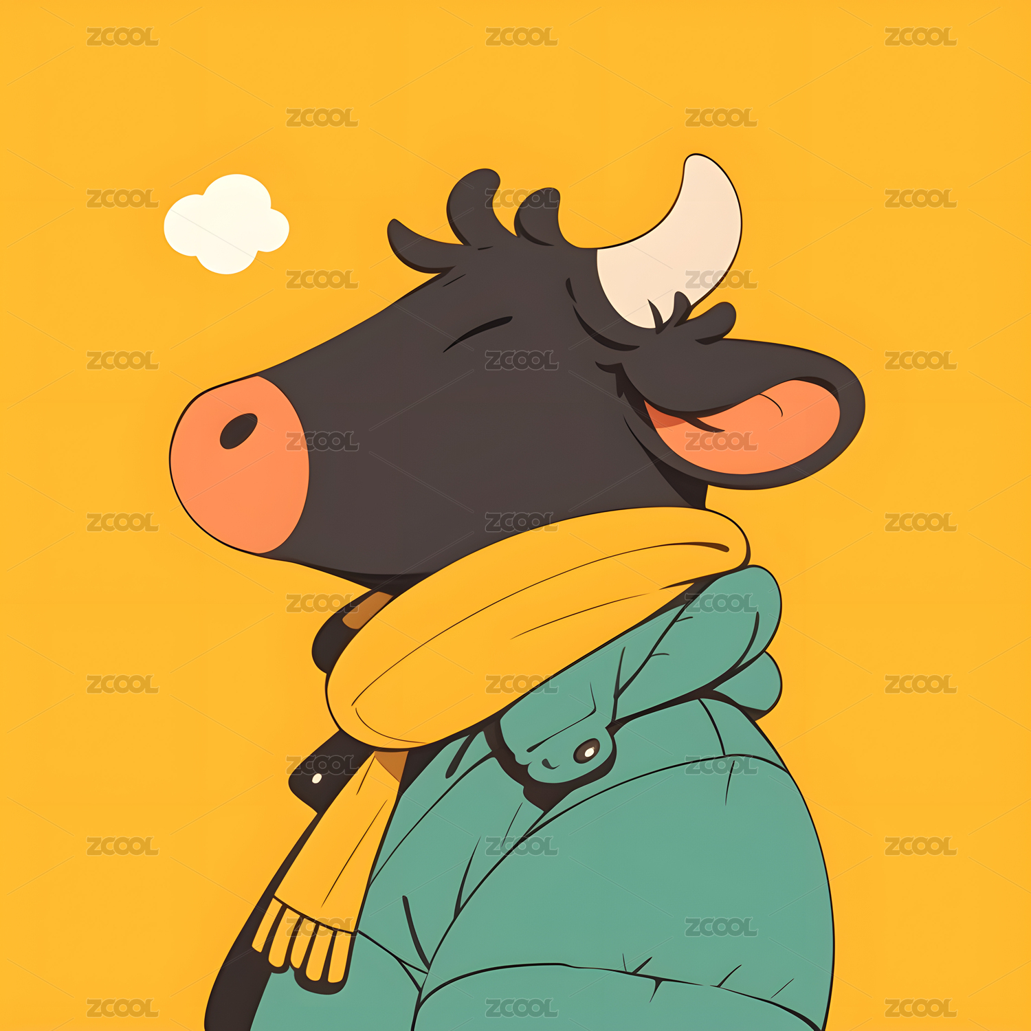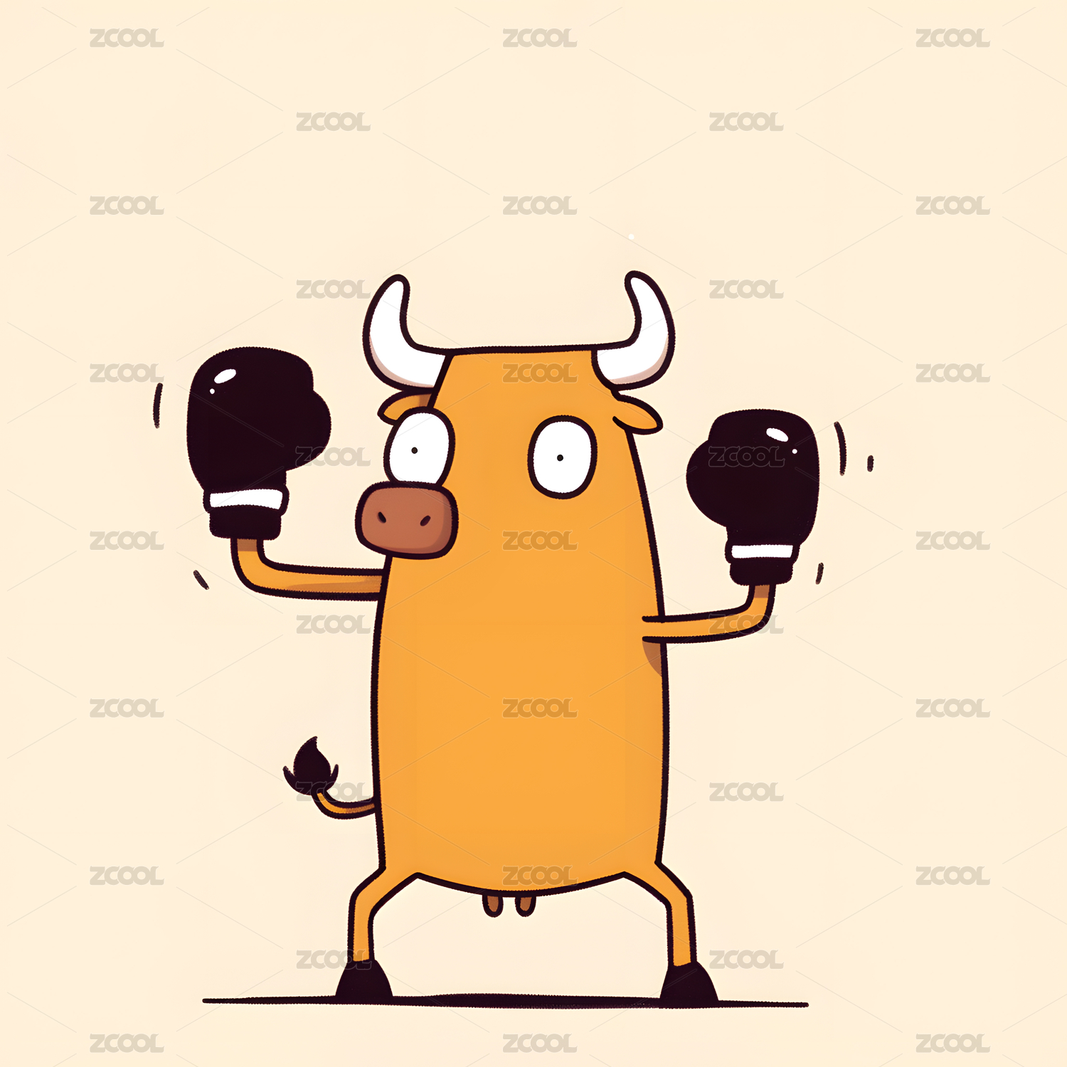 简单风格卡通牛举起杠铃的装饰印花插画图案
