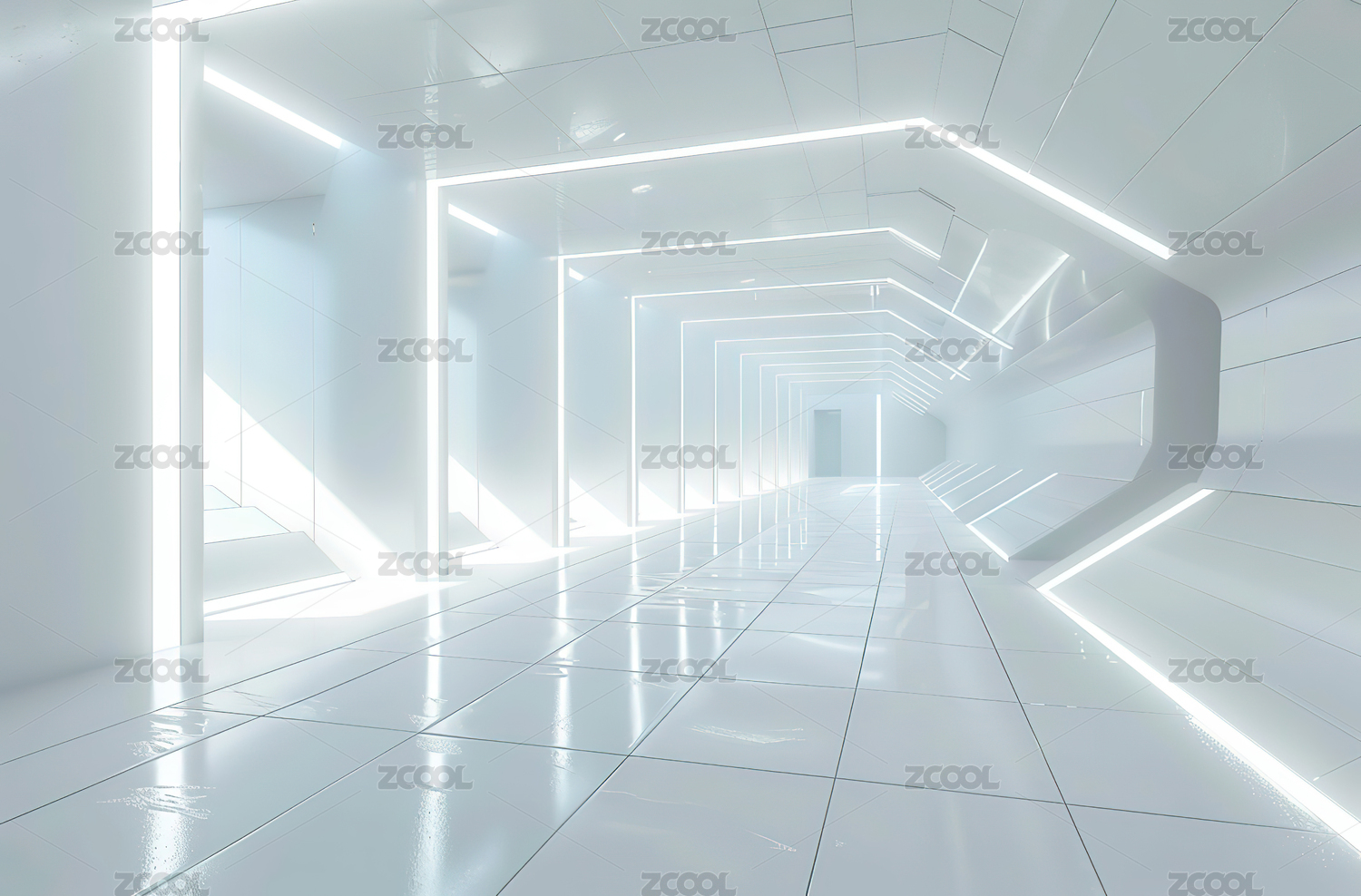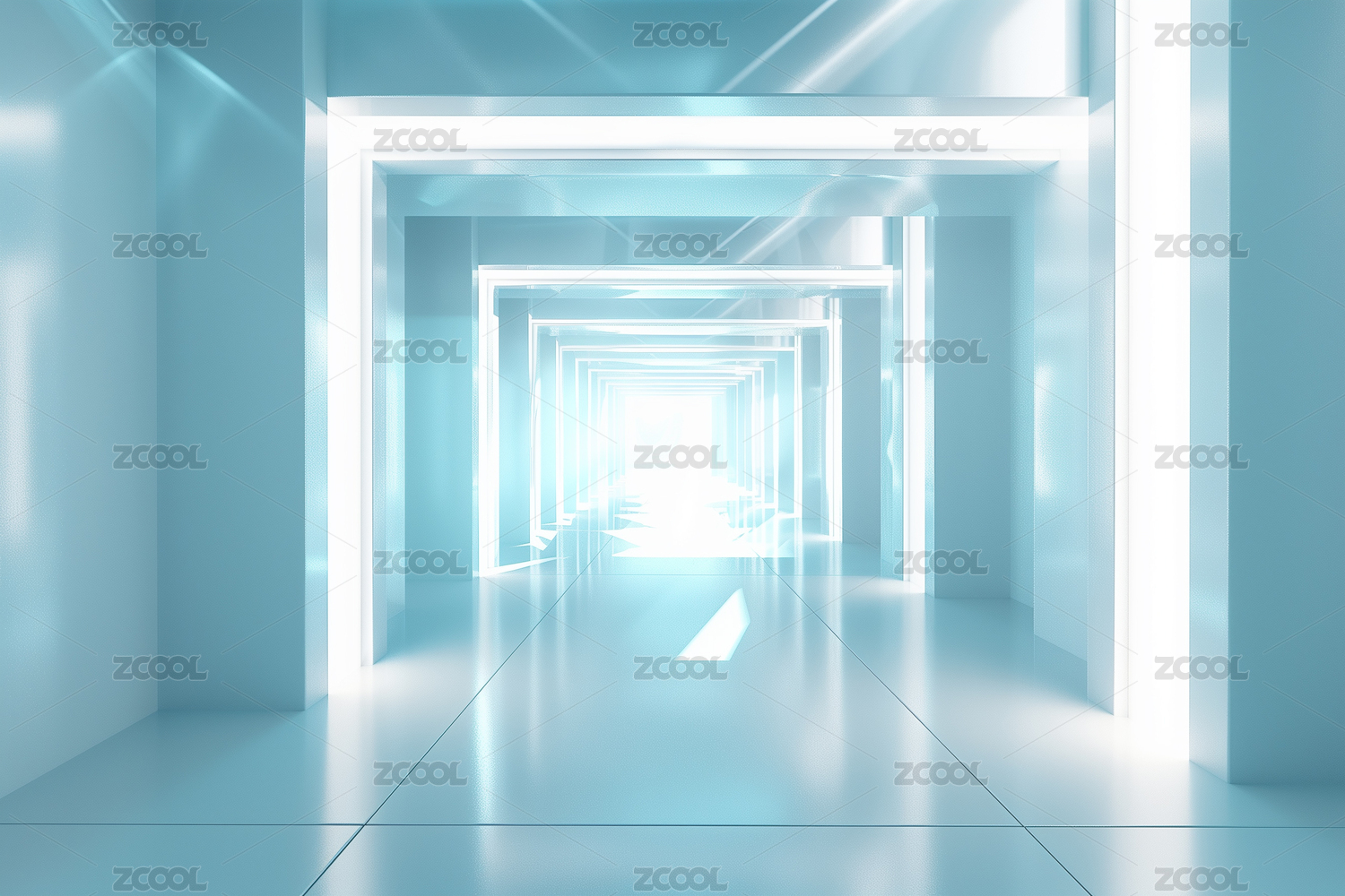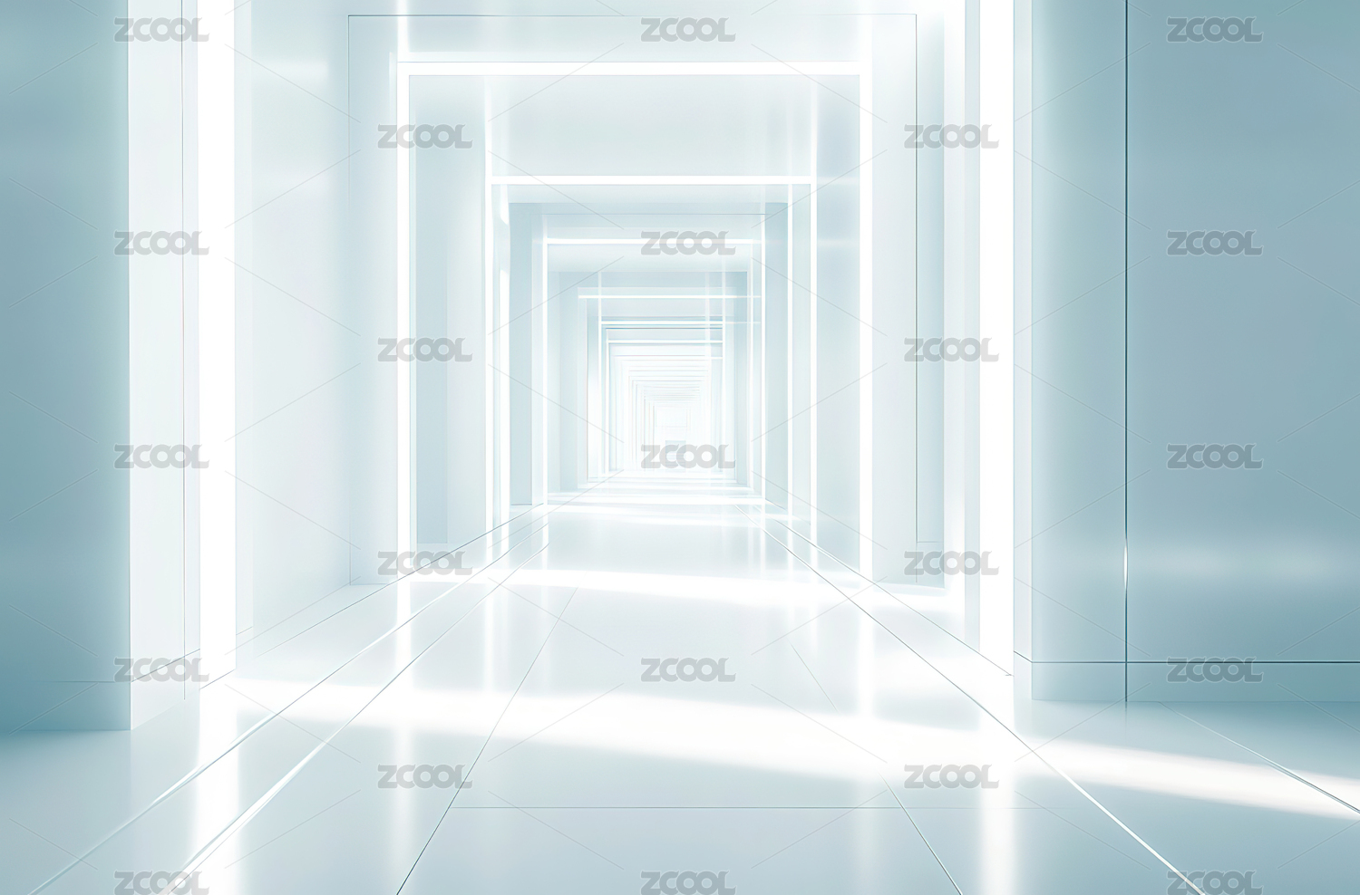 蓝白色未来感走廊场景展示