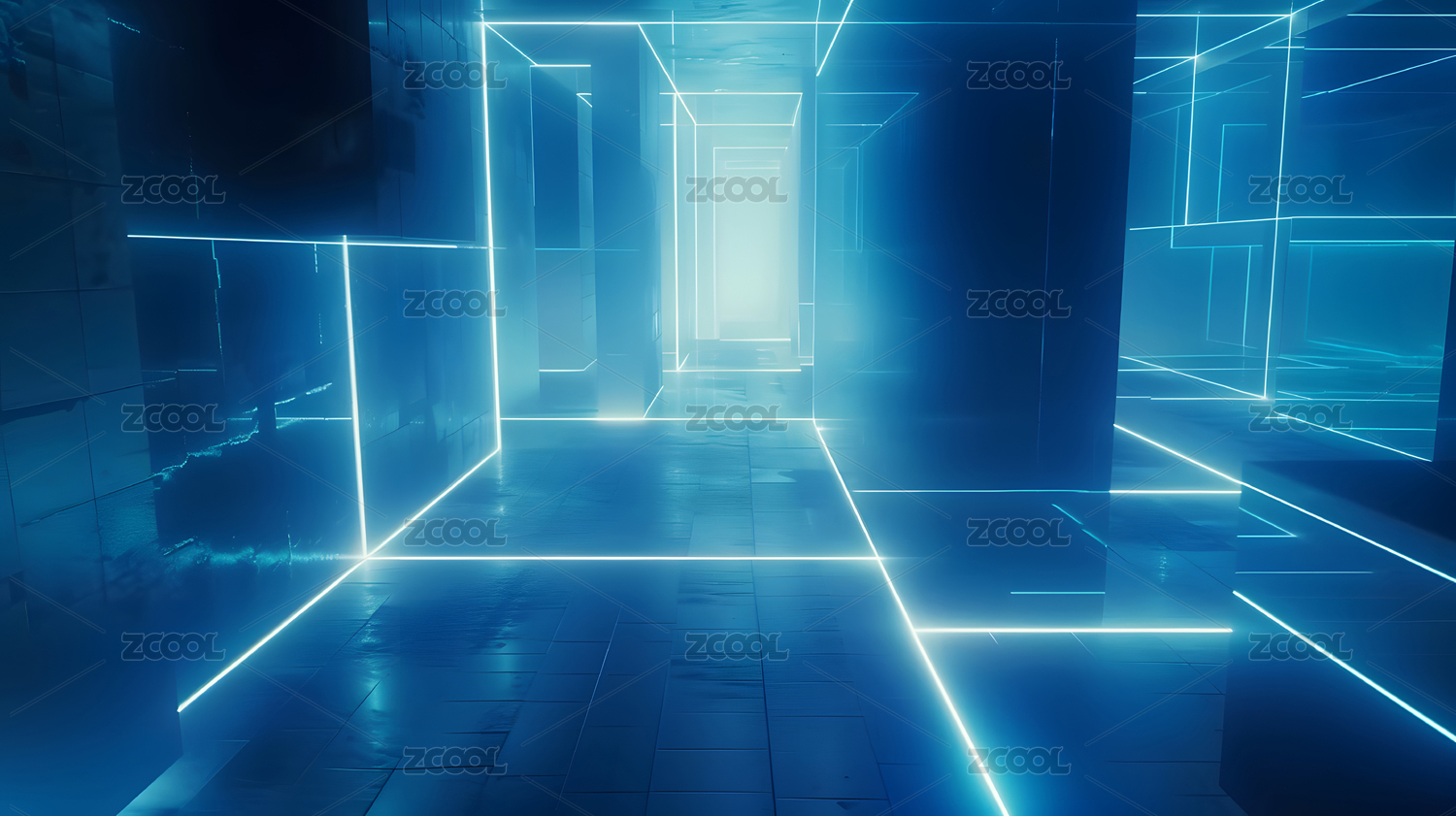 蓝色光廊透视空间