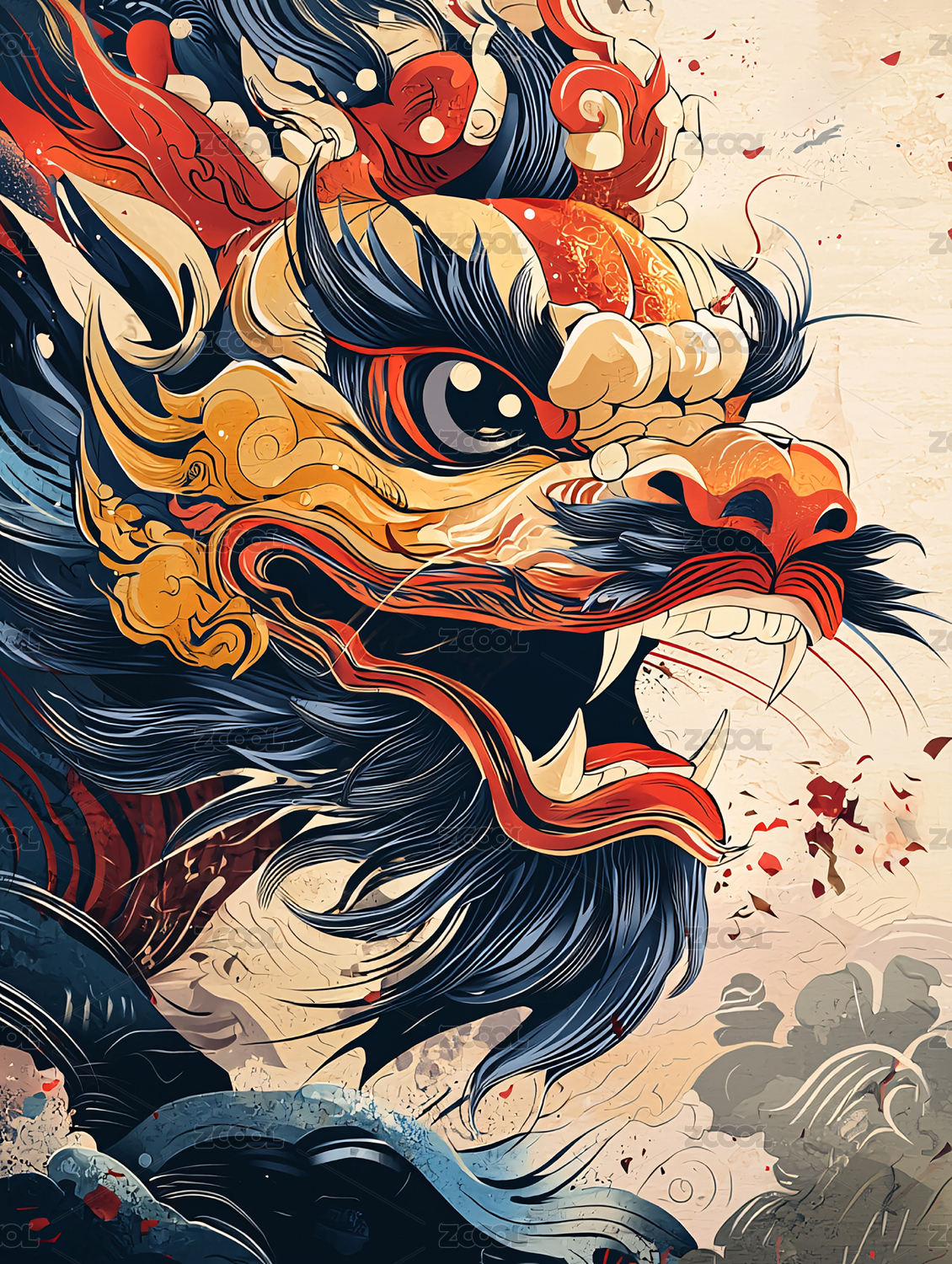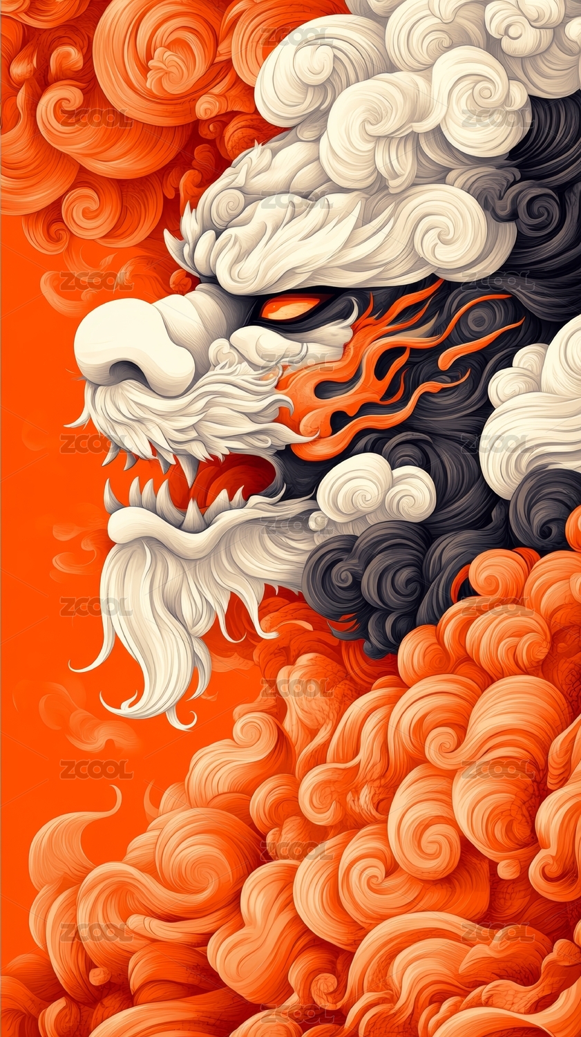 3d立体风格中国年国潮醒狮龙头壁纸插画