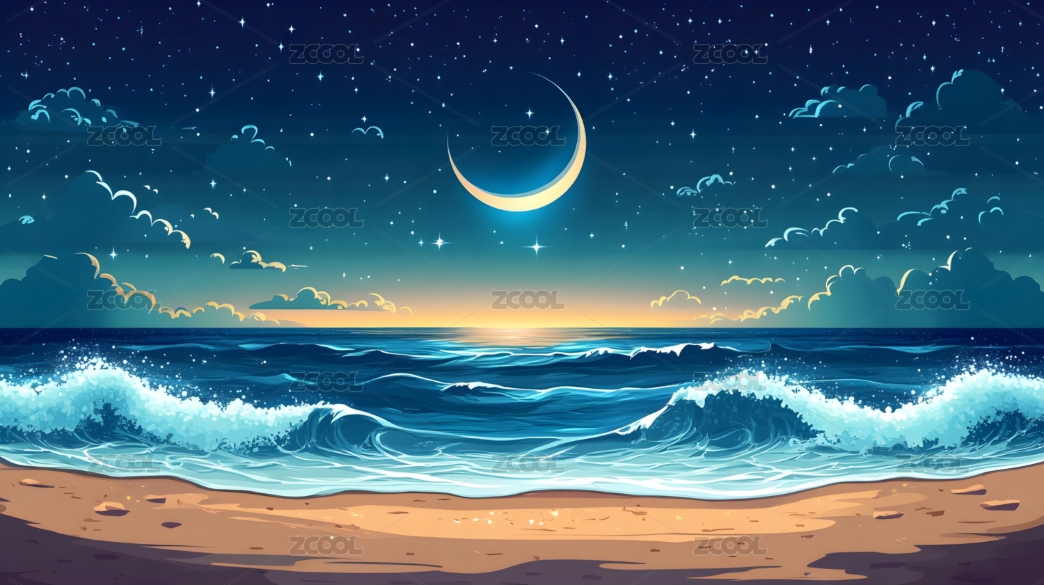 AI数字艺术,云,海洋,自然,天空,日落,自然美,风景,户外,海滩