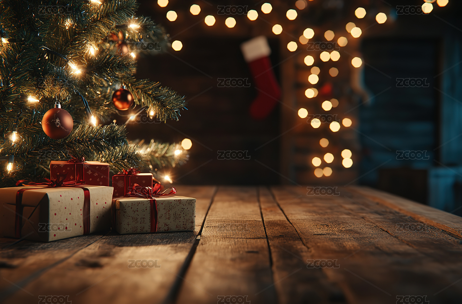 圣诞节光斑木板场景