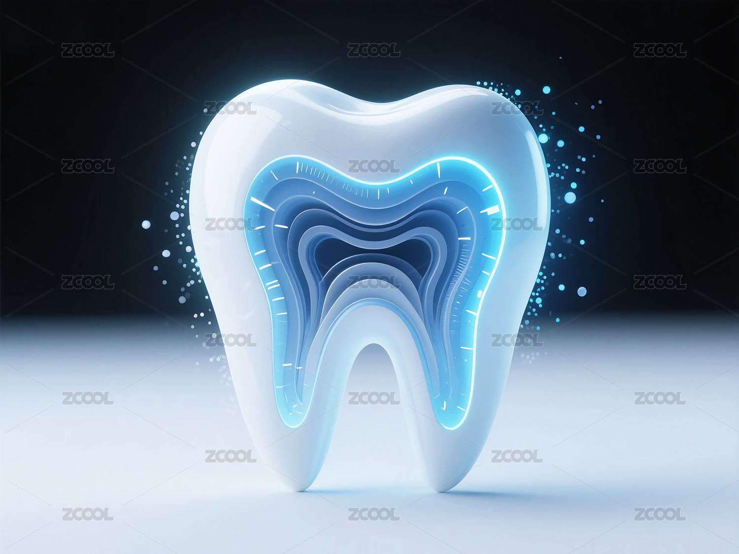 未来科技感的蓝色发光牙齿