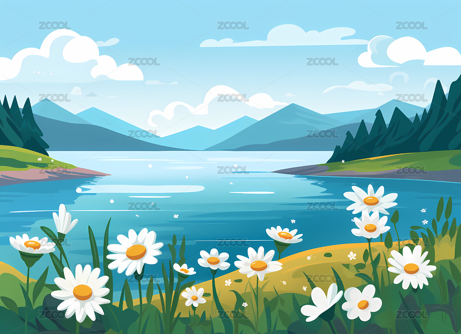 花,植物,自然,自然美,夏天,花簇,装饰,草地,季节,插画