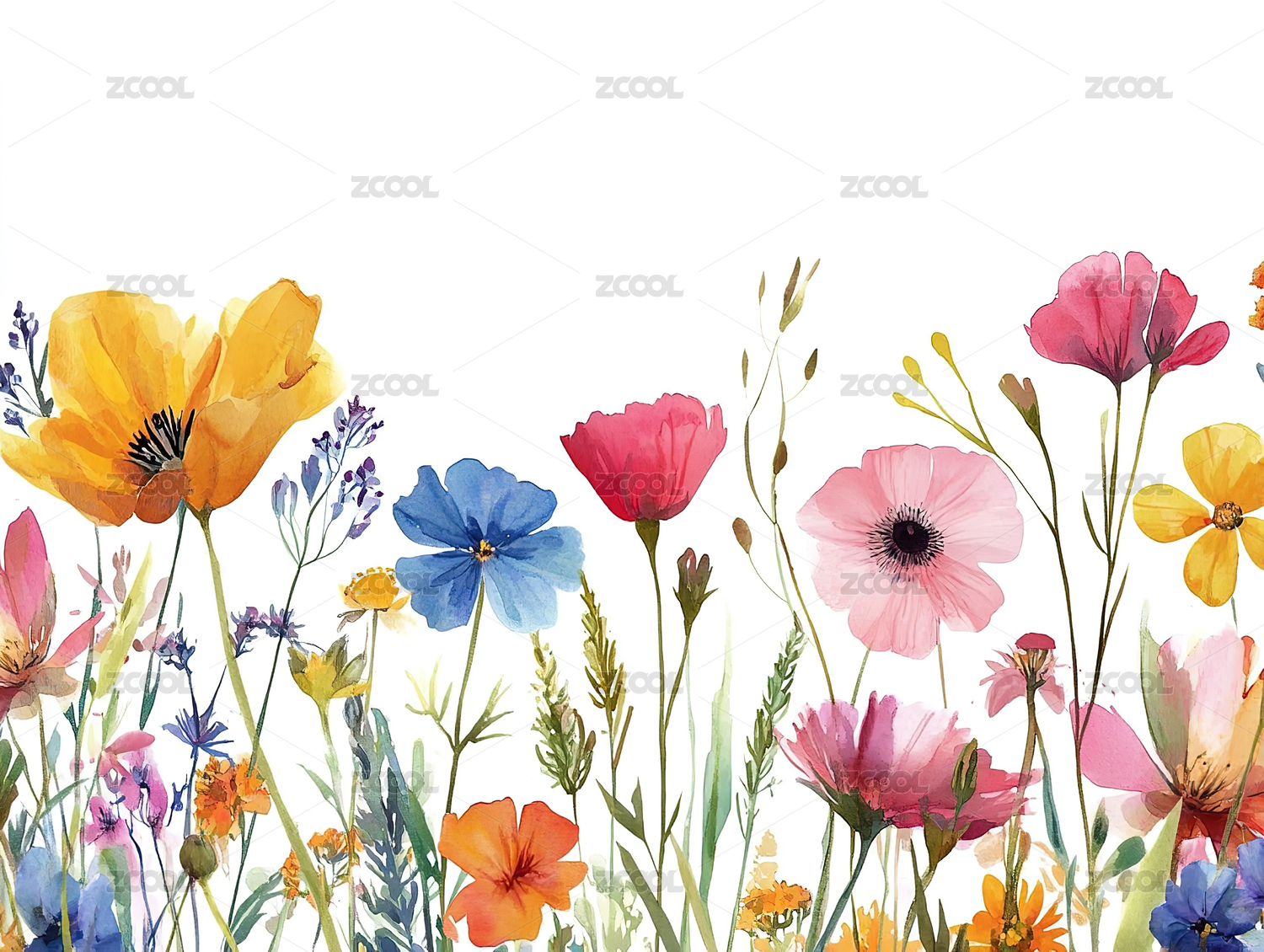 水彩橙色和粉色蝴蝶草地,纯白背景