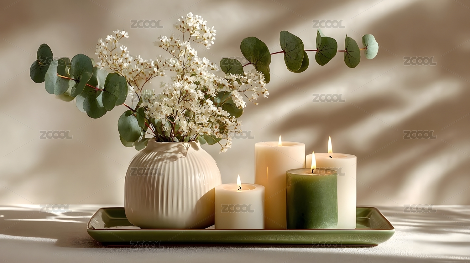 室内,白色,桌面,香薰,蜡烛,干花,安静,简约,干净,宁静