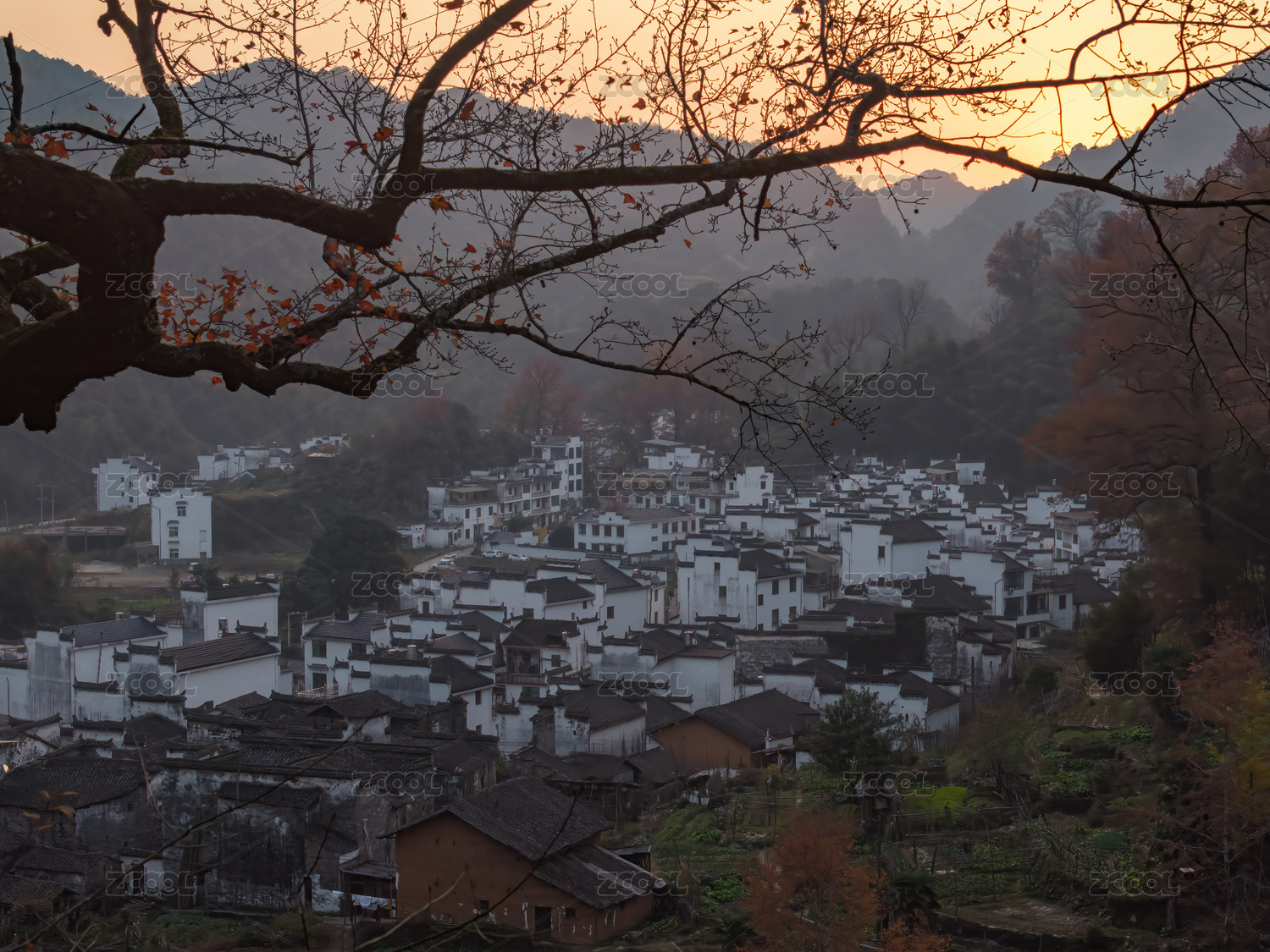 江西,上饶,婺源,长溪红枫,雾霭,山村,秋日暖阳,日落,民居,清晨