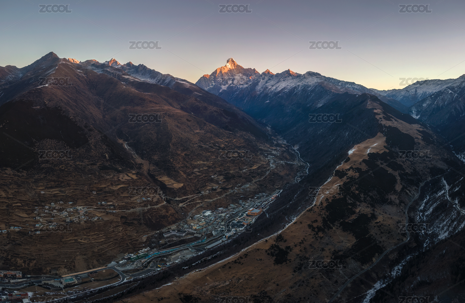 中国四川阿坝州四姑娘山冬季日出航拍风景图