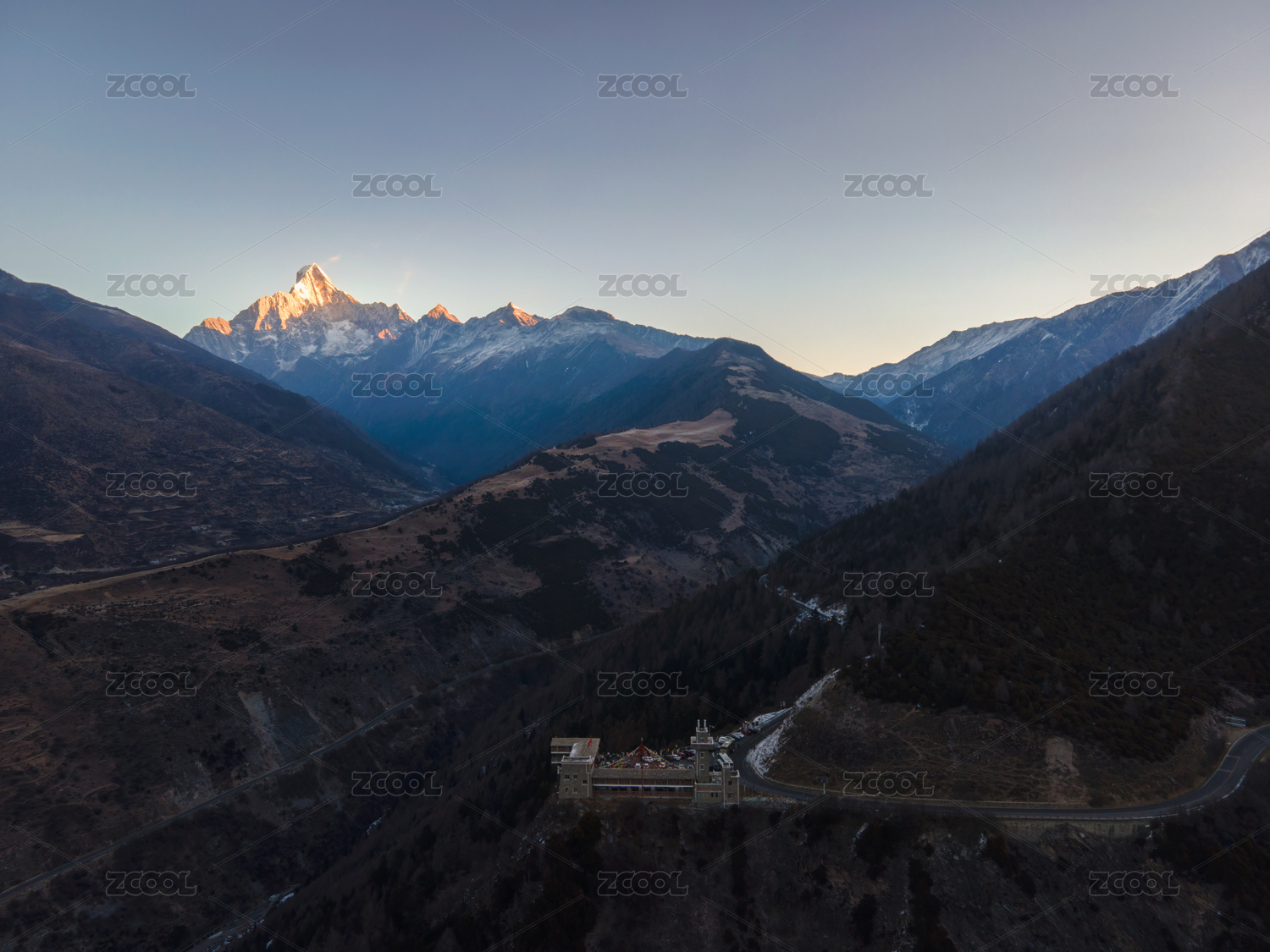 四川阿坝州猫鼻梁四姑娘山日照金山高空航拍