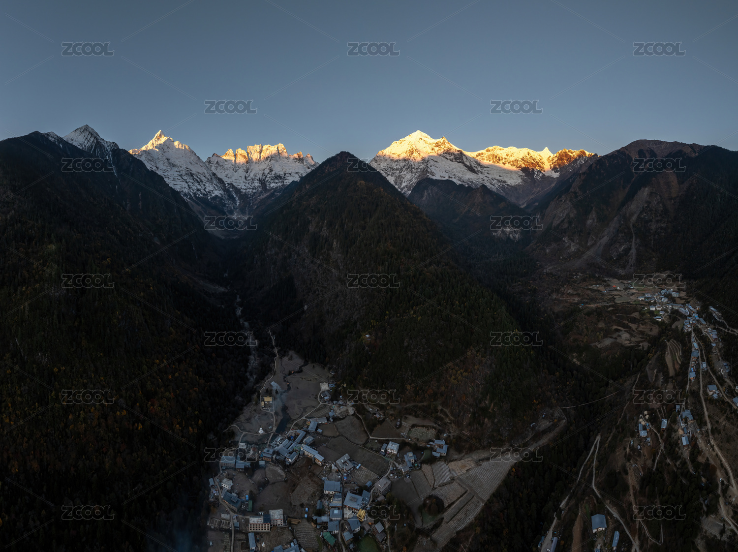 云南香格里拉雨崩村梅里雪山秋色高空航拍
