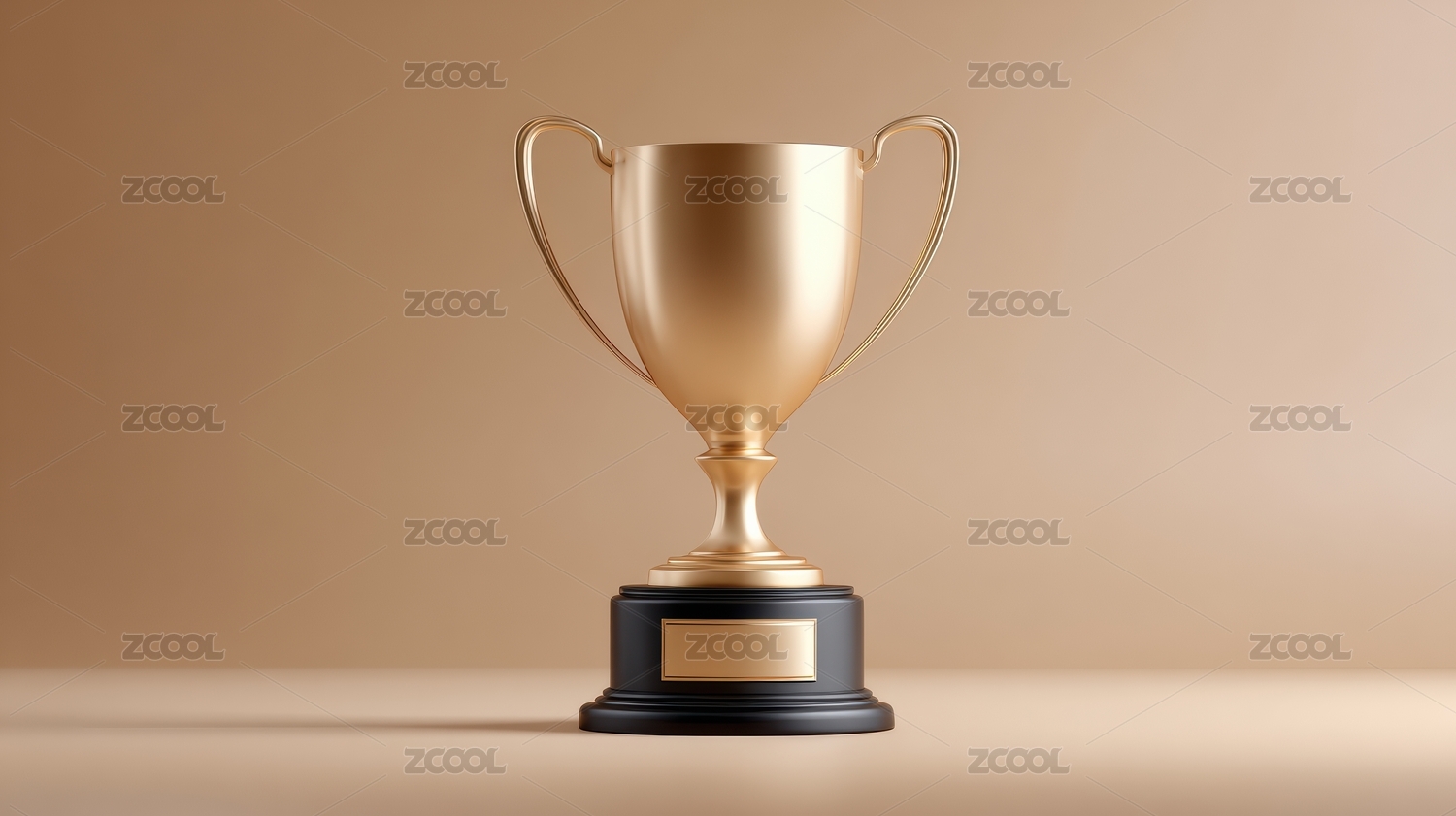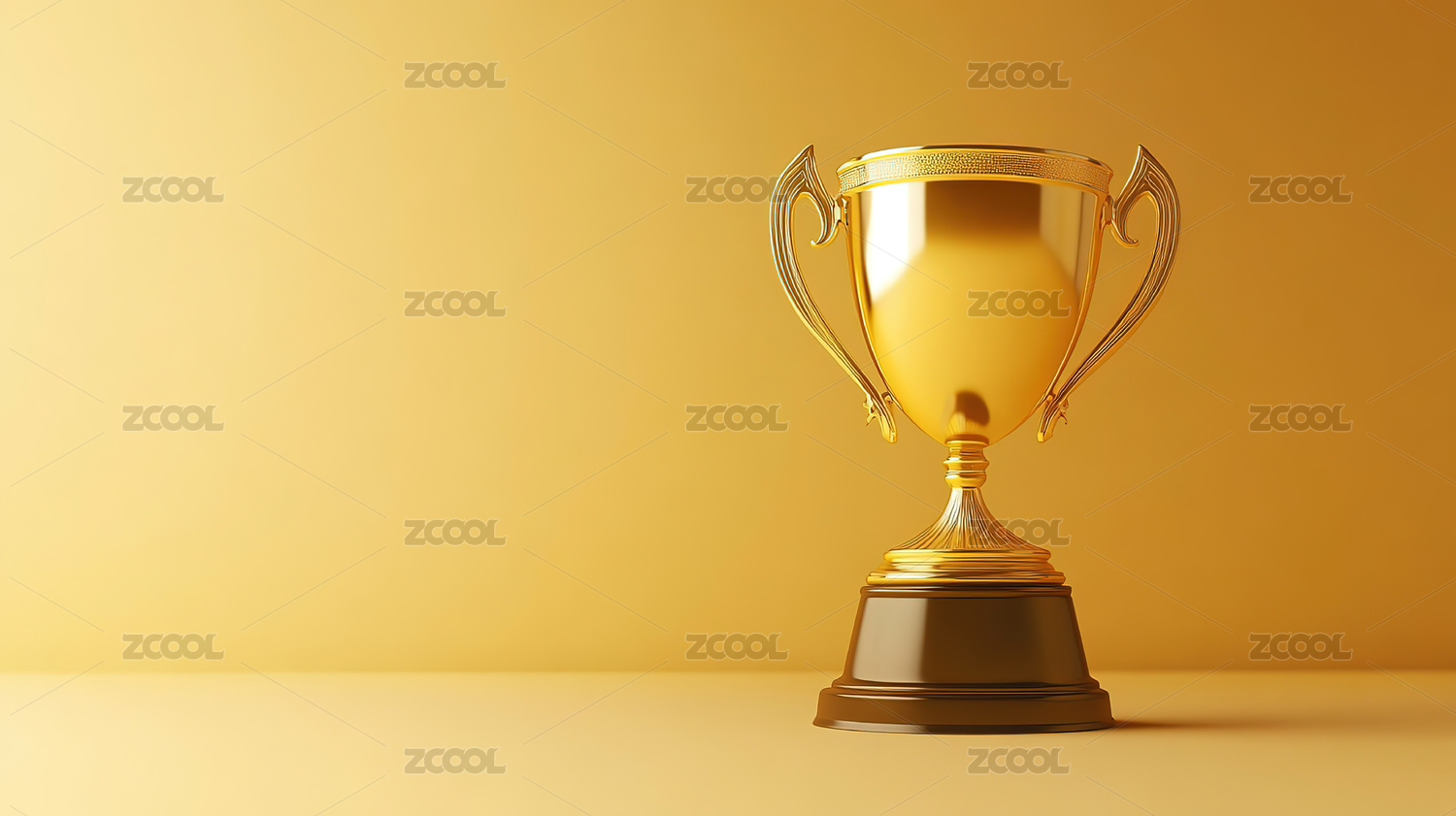 闪耀的金色奖杯在红色背景下熠熠生辉
