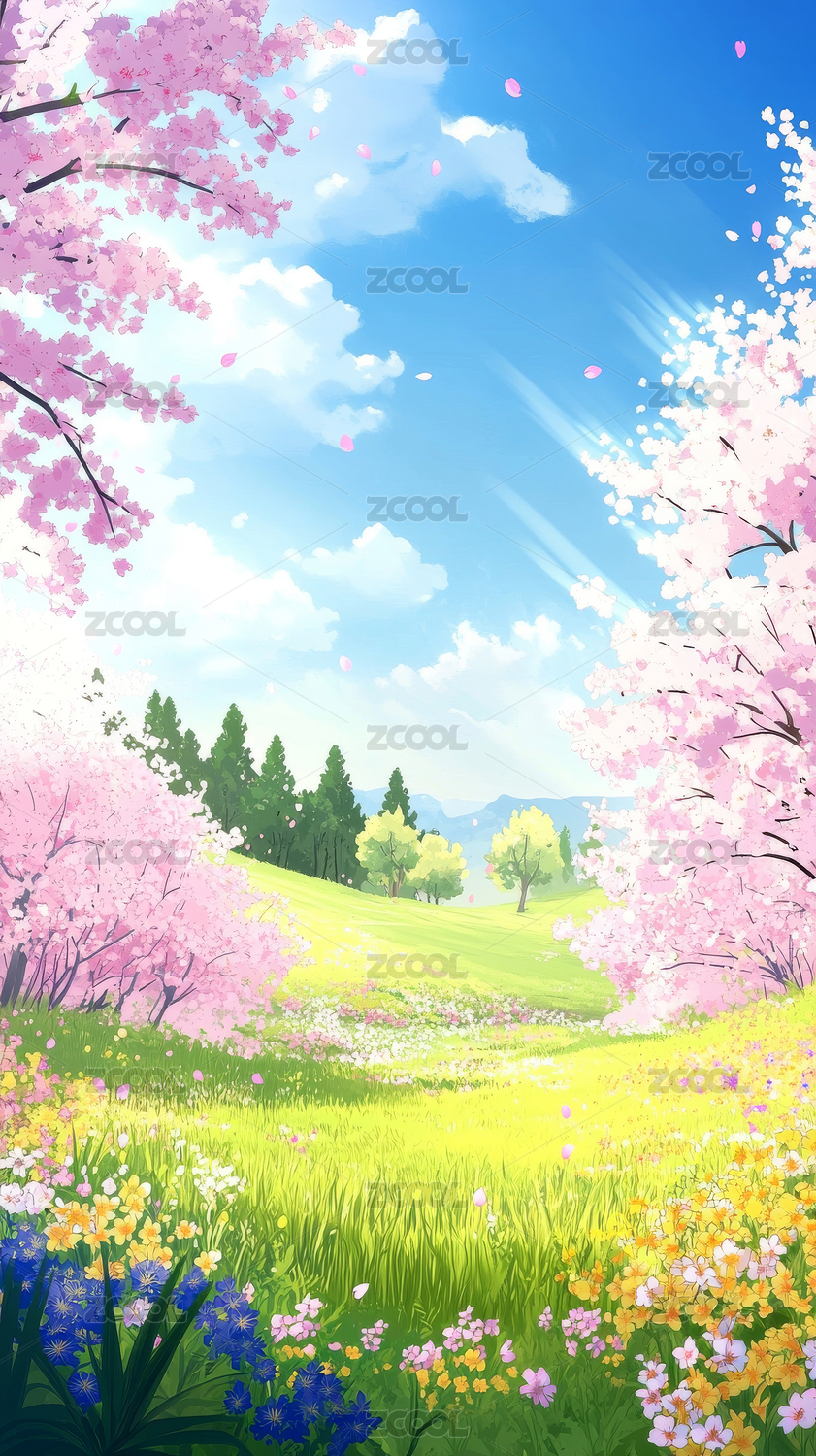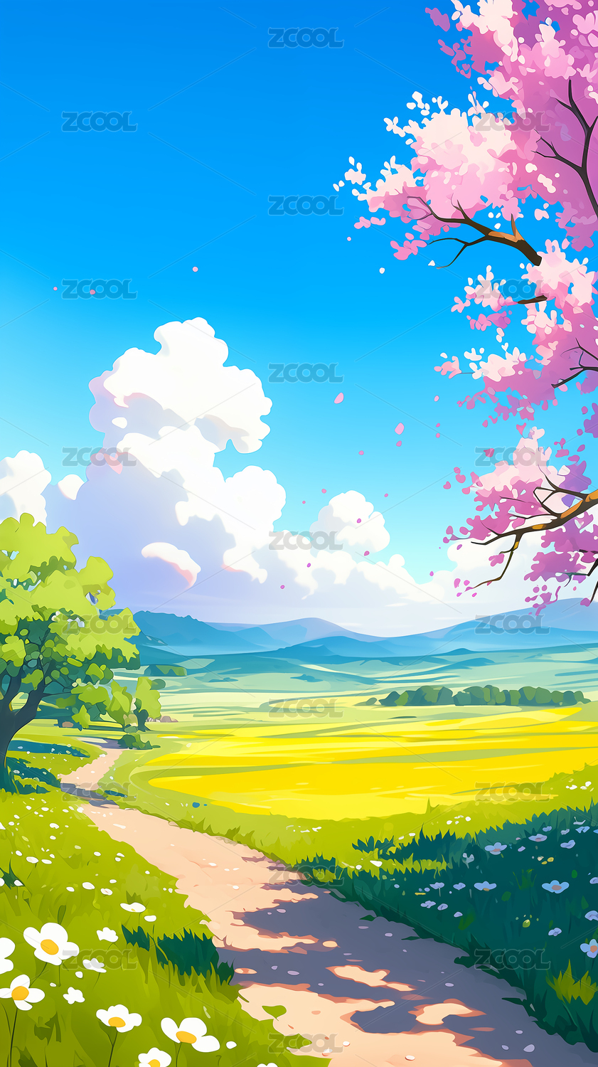 唯美的卡通春天风景插画背景