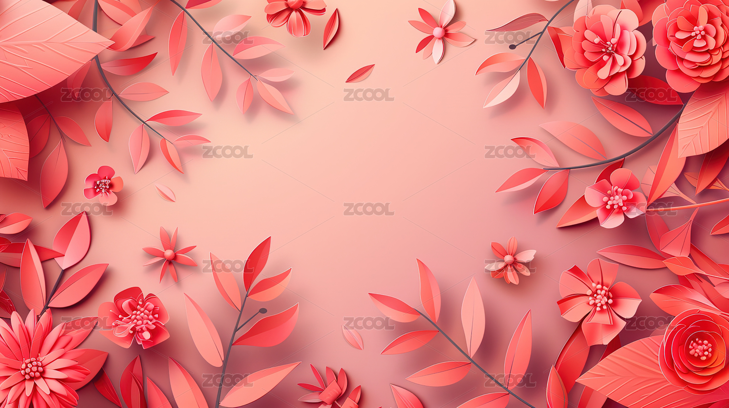 红色粉色边框鲜花花朵剪纸背景壁纸