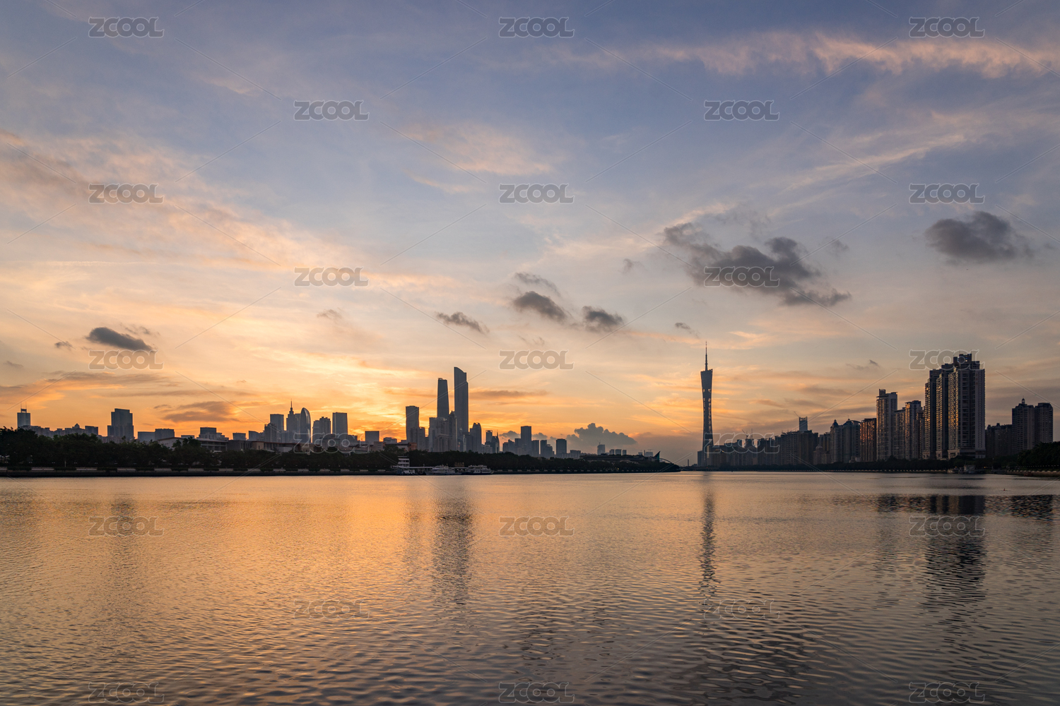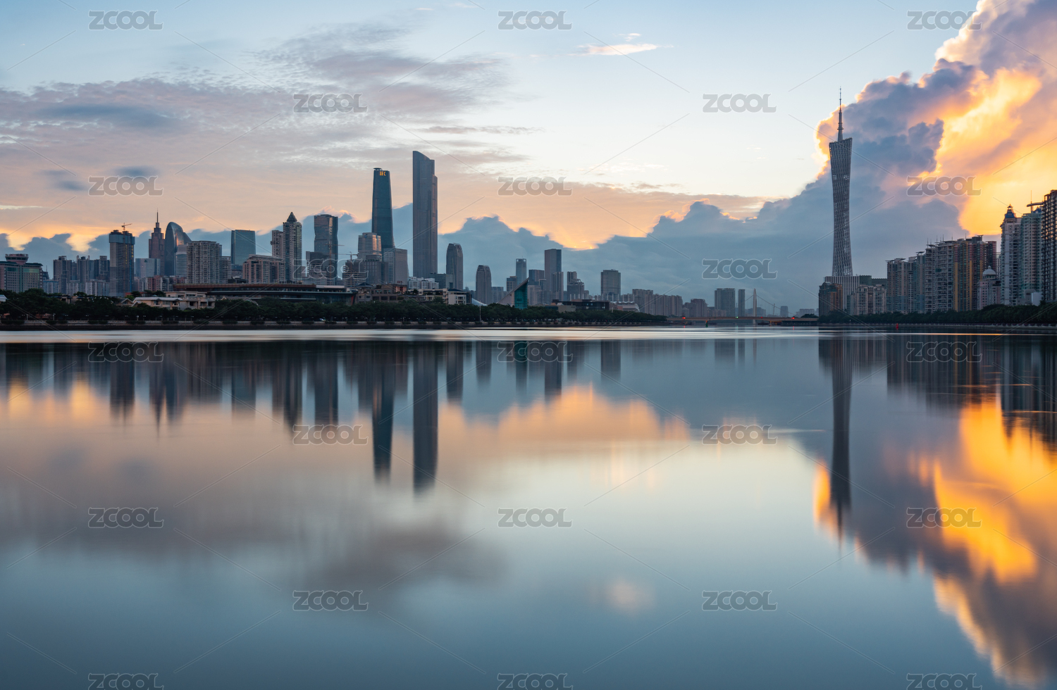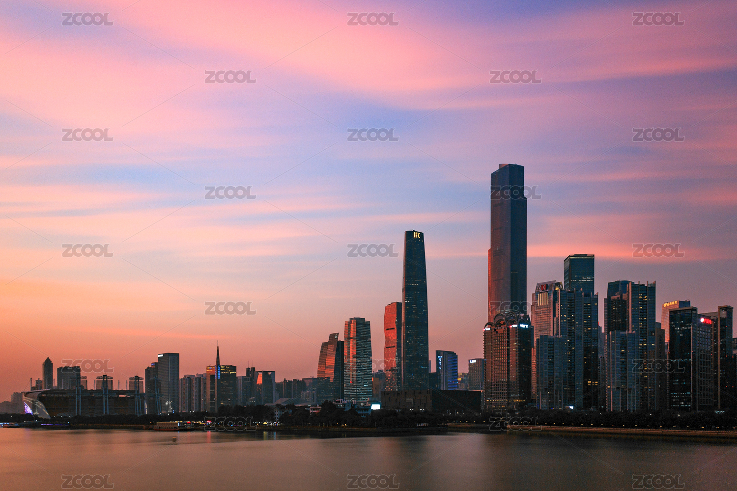 广州珠江新城CBD建筑群黄昏晚霞落日余晖