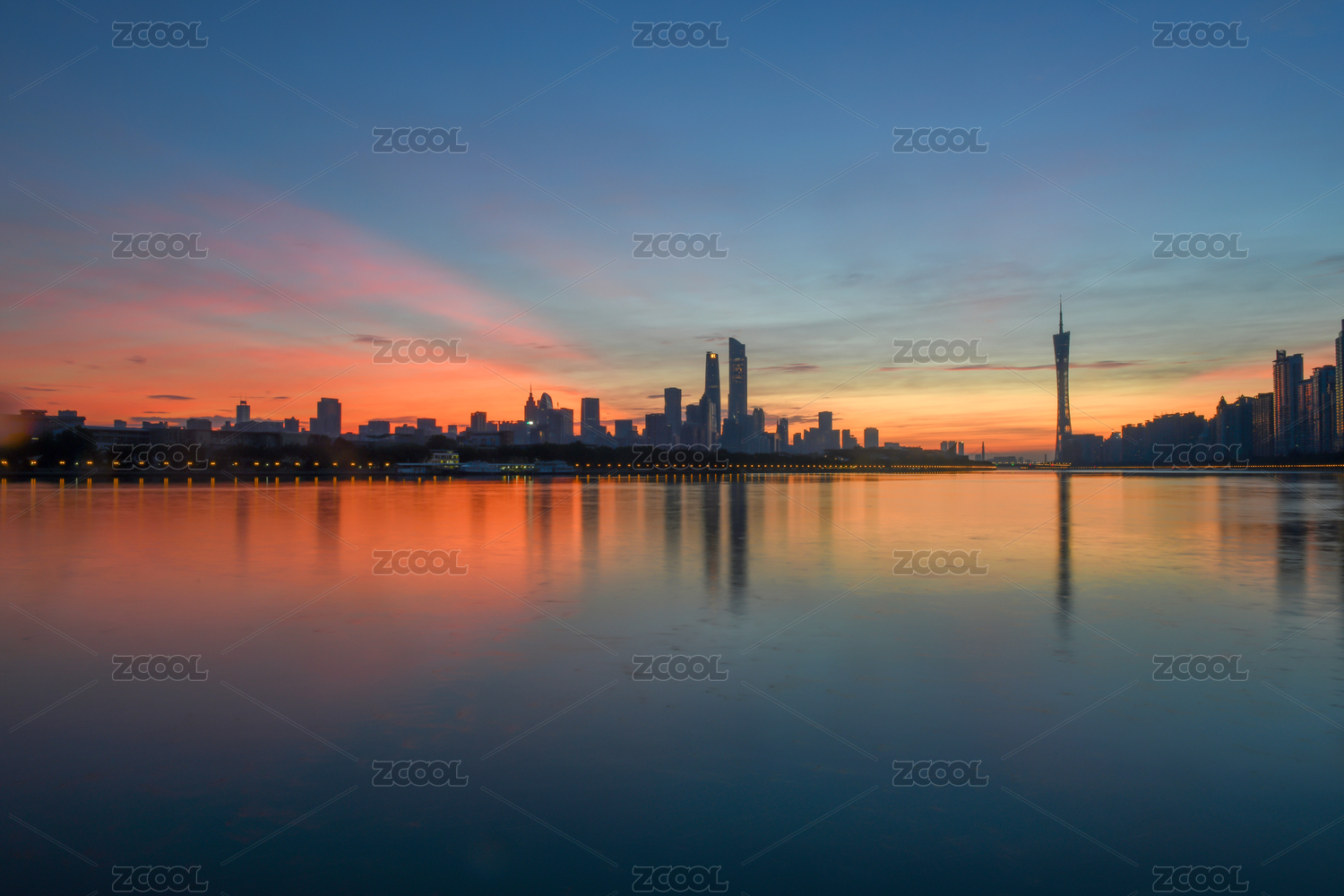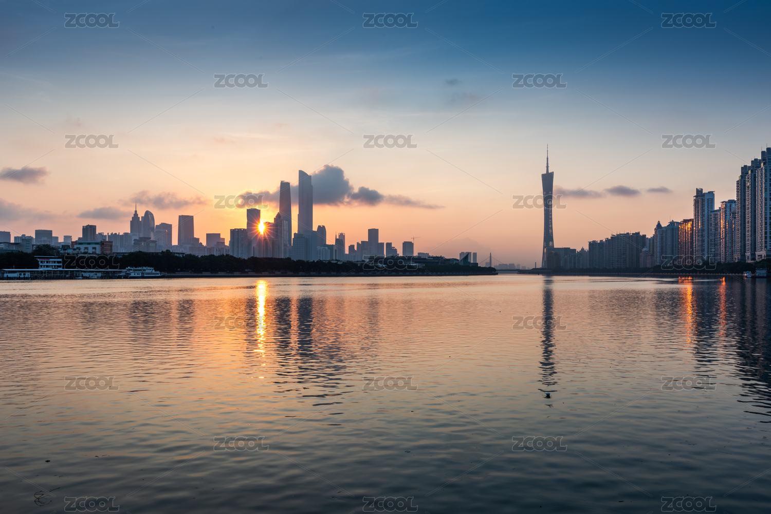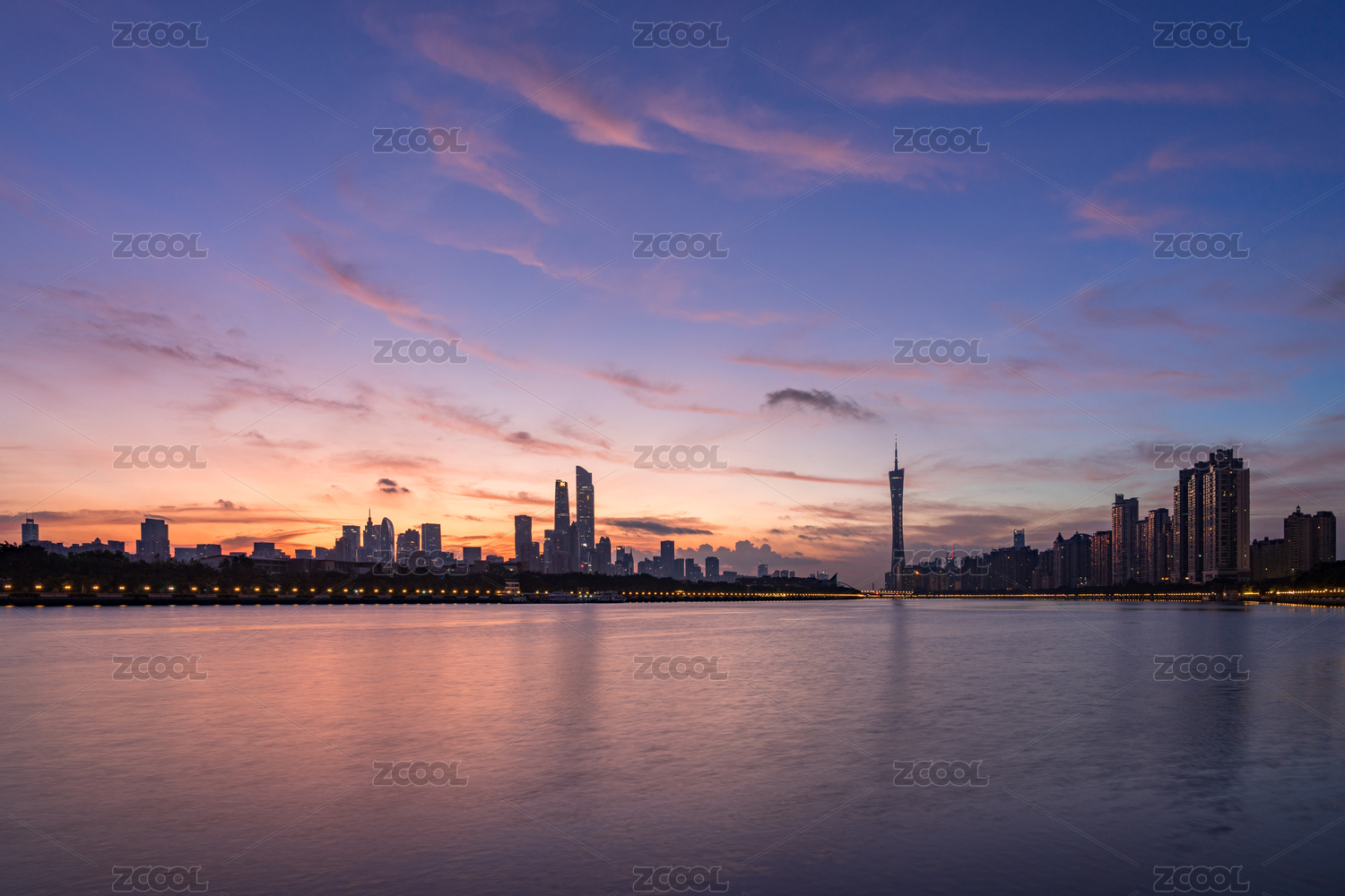 广州珠江新城CBD建筑群黄昏晚霞落日余晖