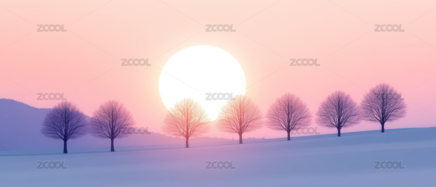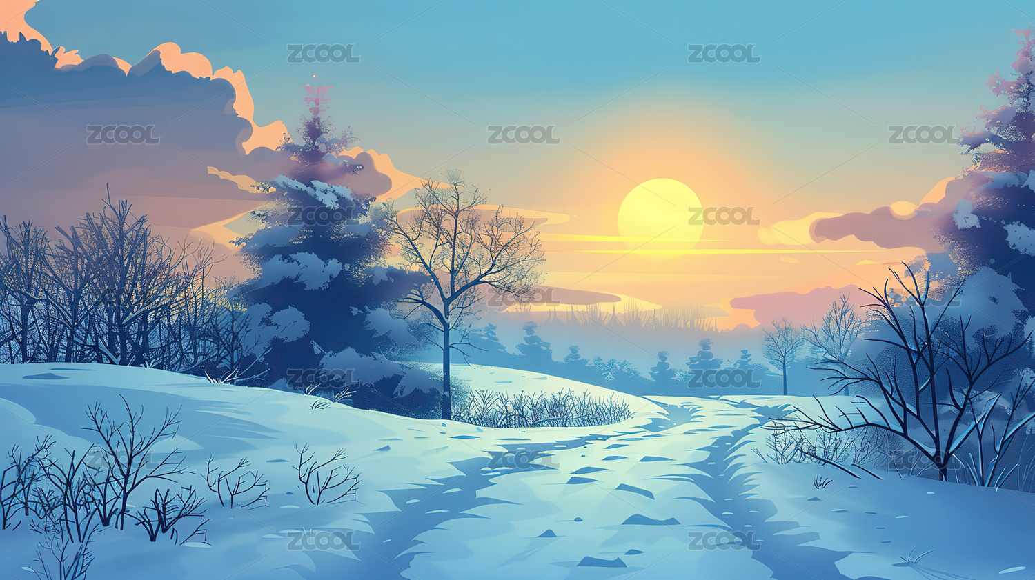 冬季节气插画冬天落日场景插图