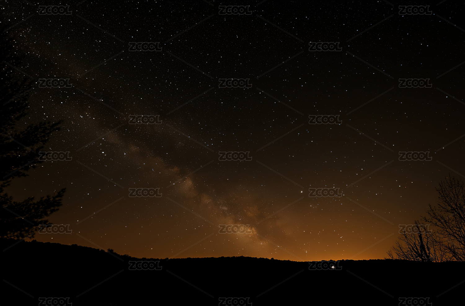 银河,星空,夜晚,星野,剪影,自然,生态,高山,树木