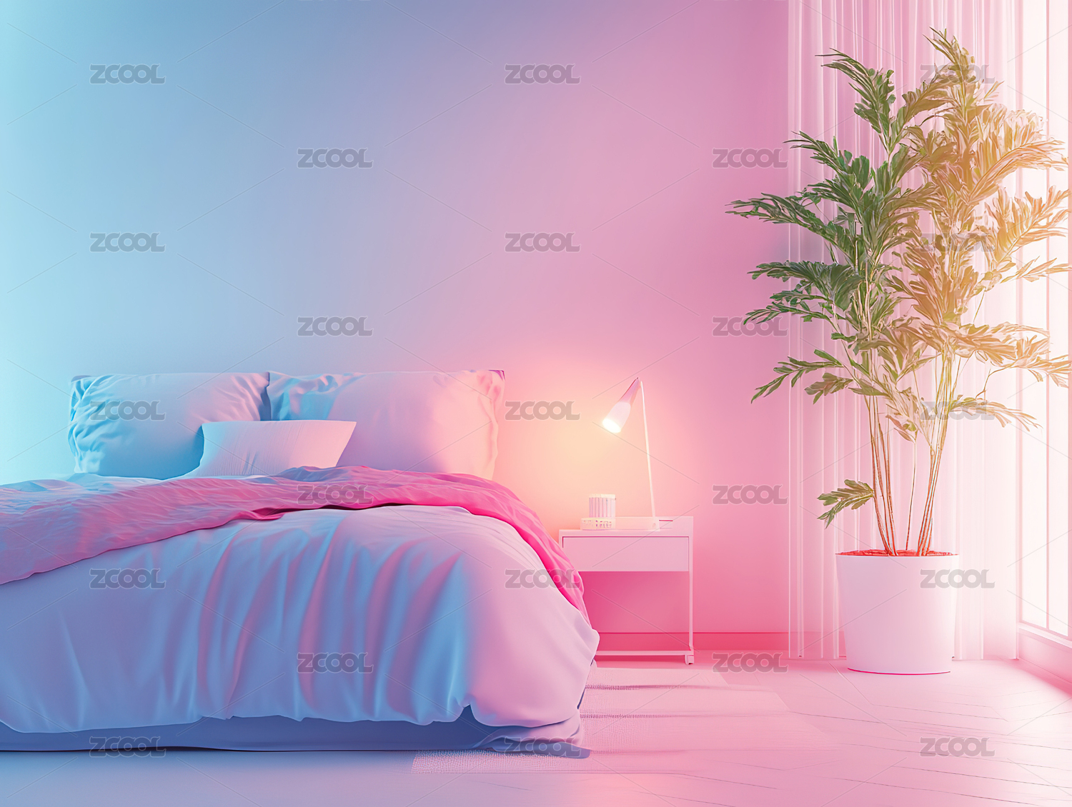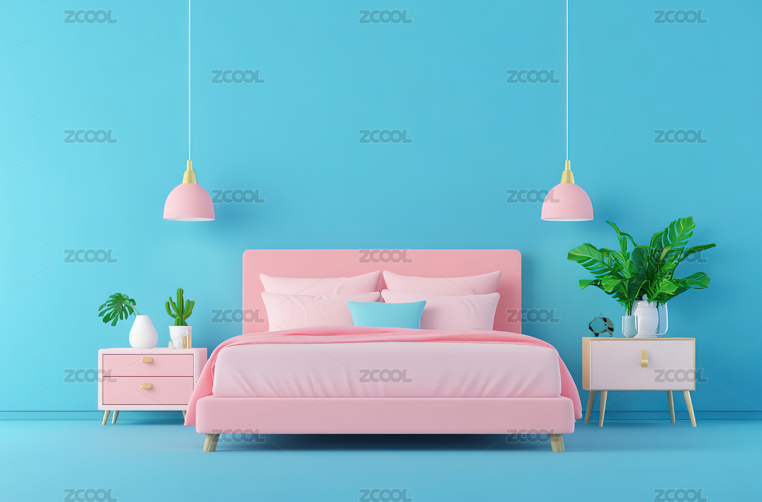 3D卡通小清新粉色床插画