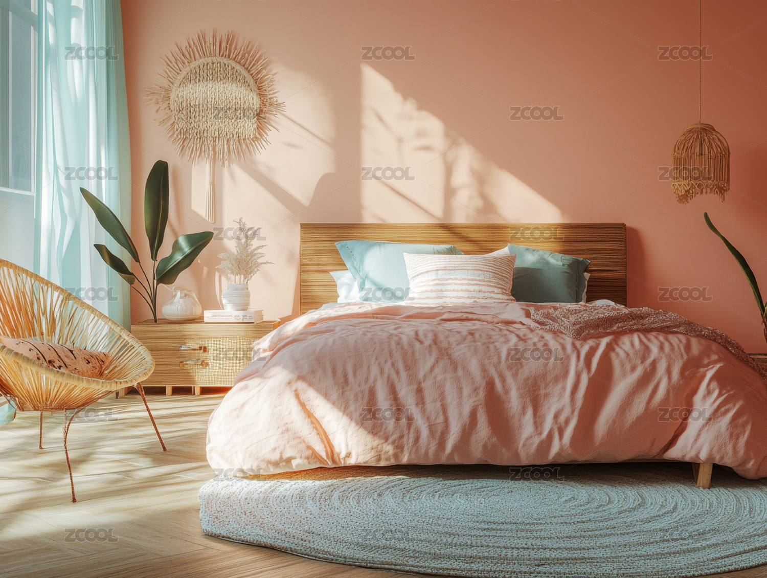 现代,简约,卧室,吊灯,植物,地毯,舒适,设计,时尚,休闲