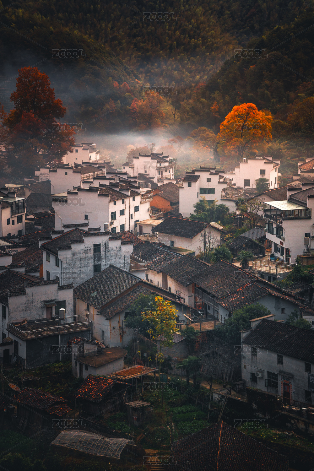 婺源,江西,上饶市,徽派建筑,村庄,秋色,晒秋,晨雾,炊烟袅袅,石城