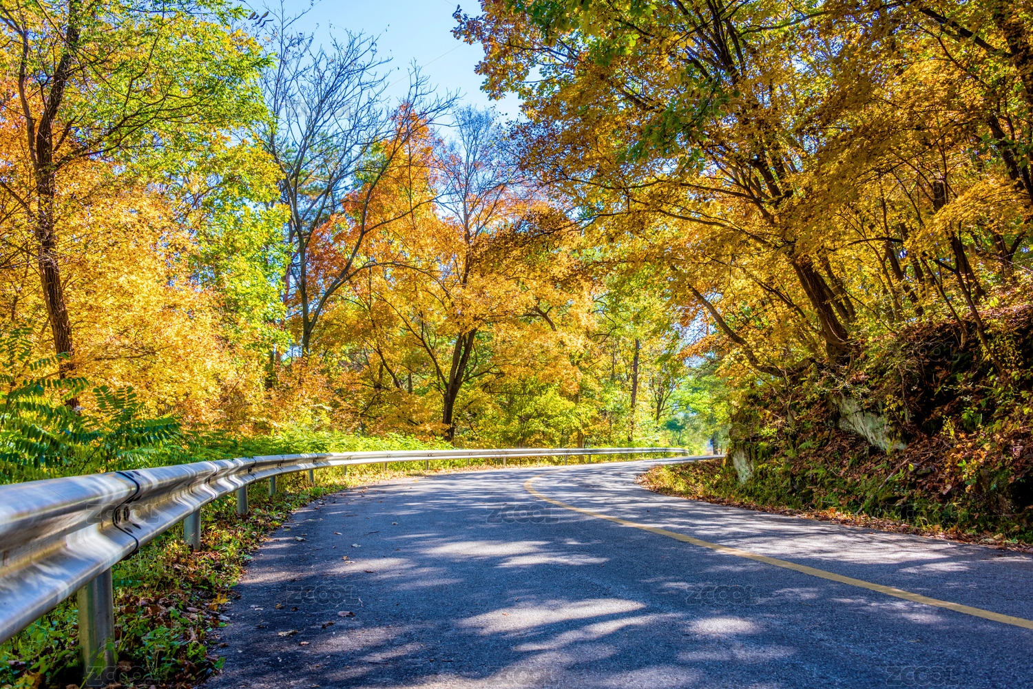 中国吉林通化辉南龙湾群景区秋日林荫大道