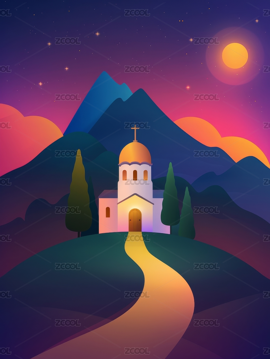 建筑,拜占庭,夕阳,交融,沧桑,石墙,庭院,城堡,景观,画面