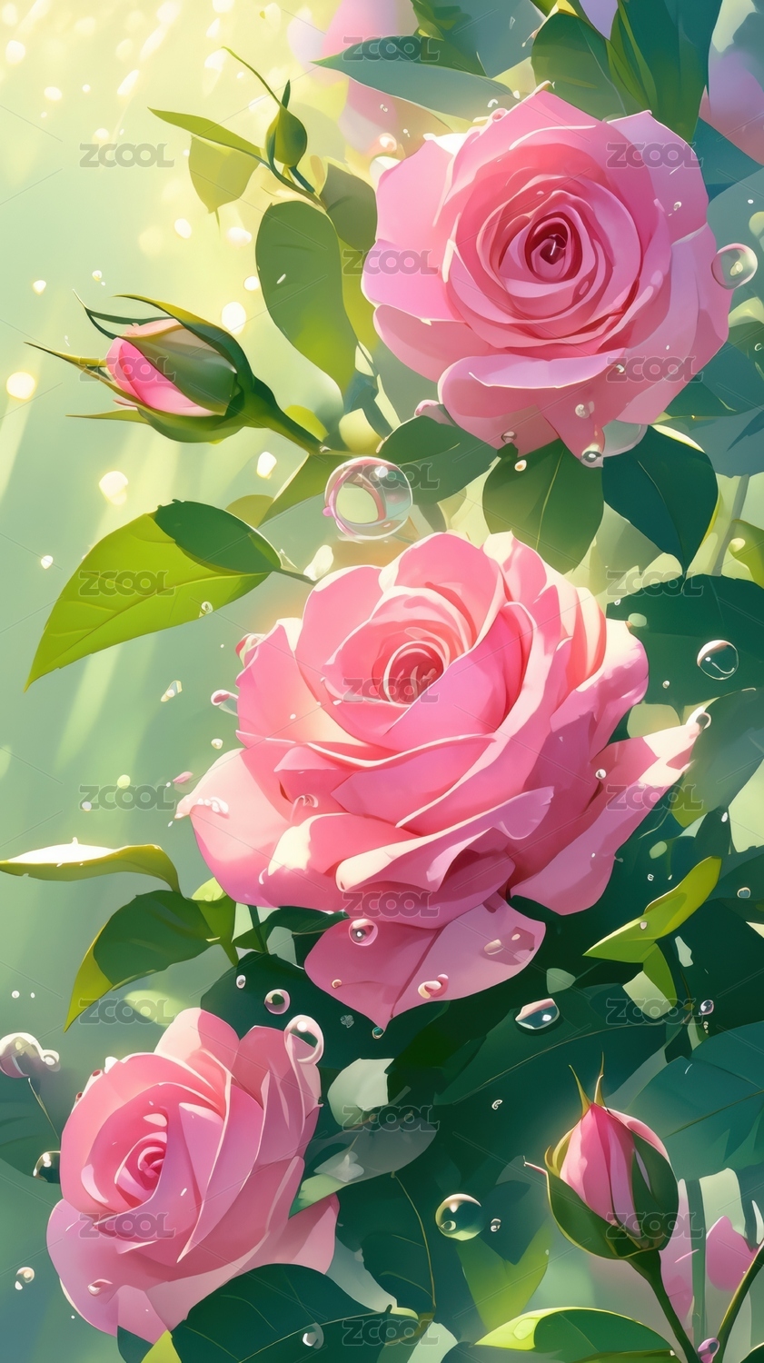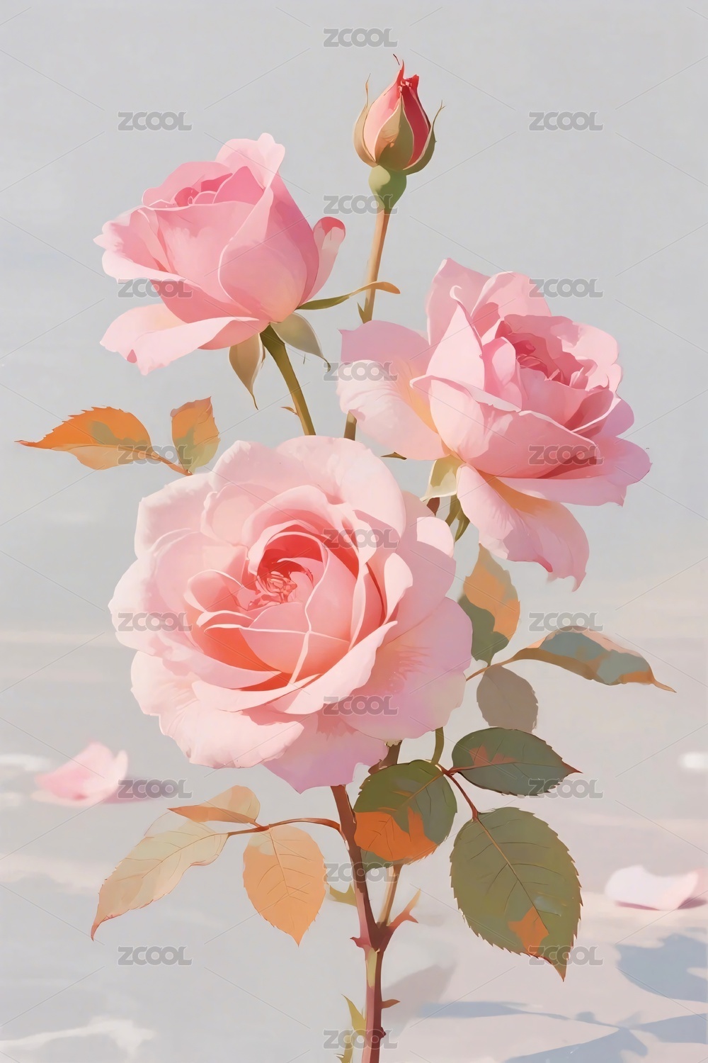 梦幻粉色玫瑰花插画
