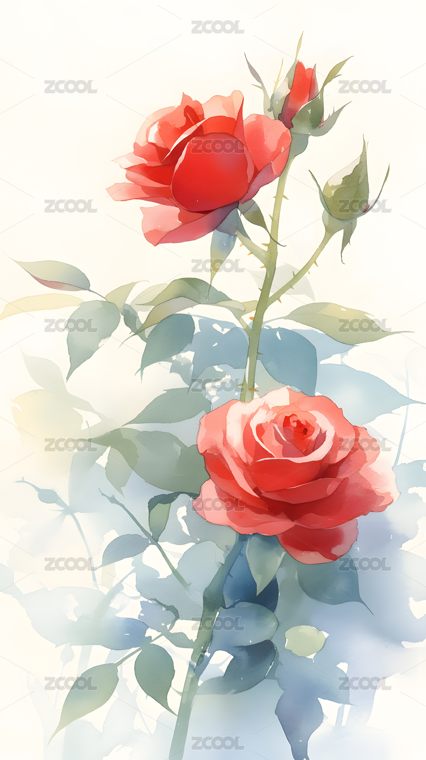 水彩玫瑰插画