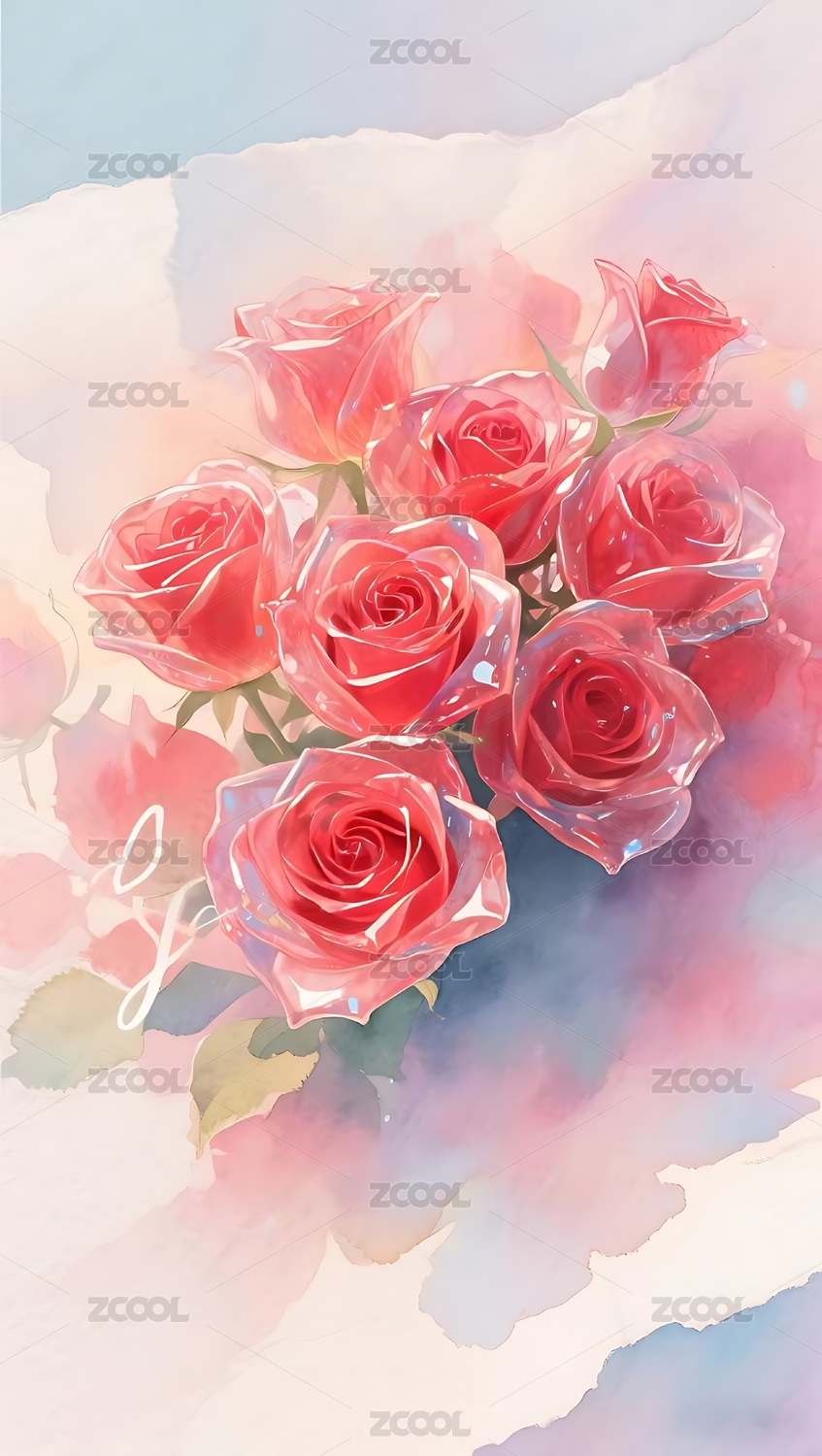 玫瑰花水彩风格插画