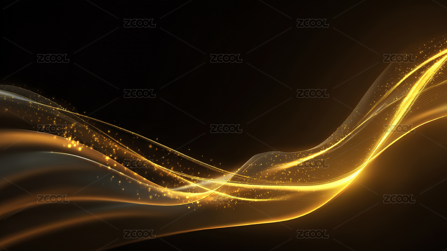 科技背景——黑色背景金色波纹流动粒子