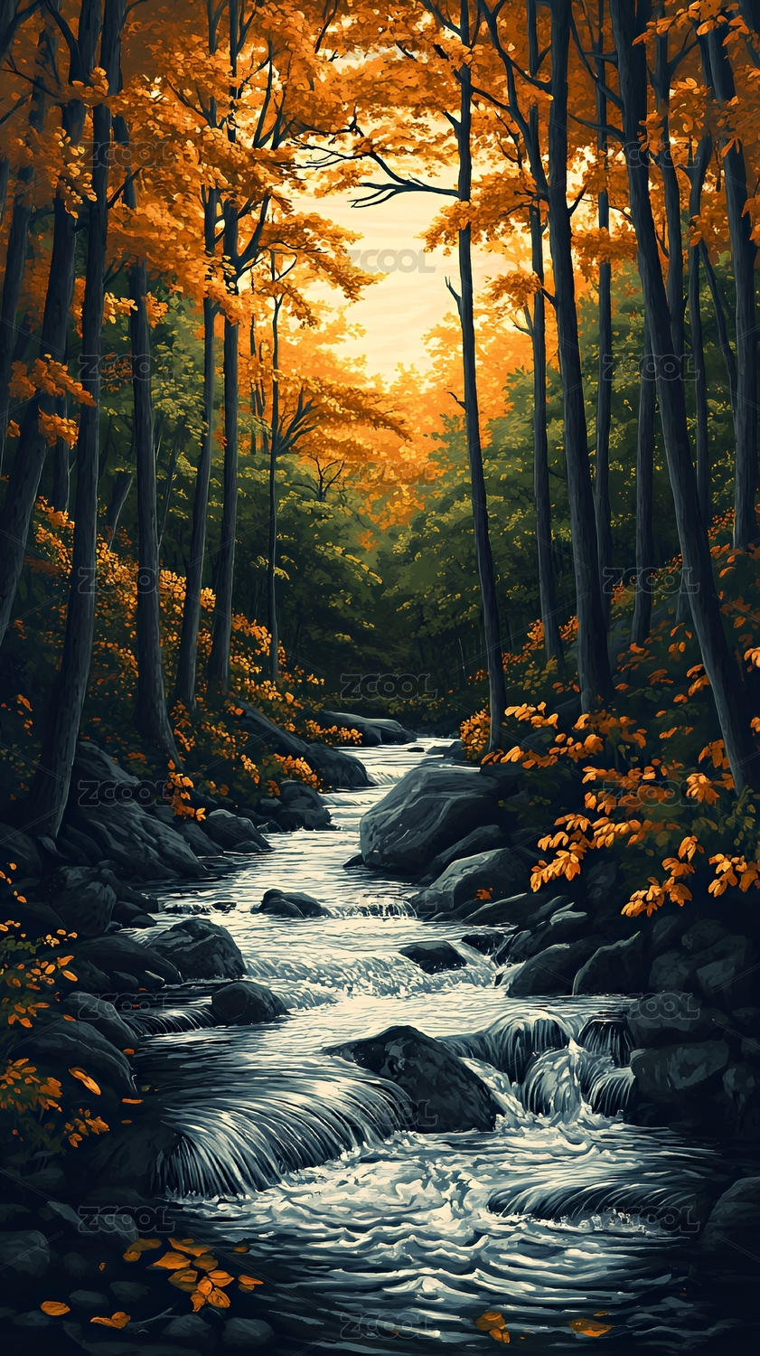 秋日森林溪流