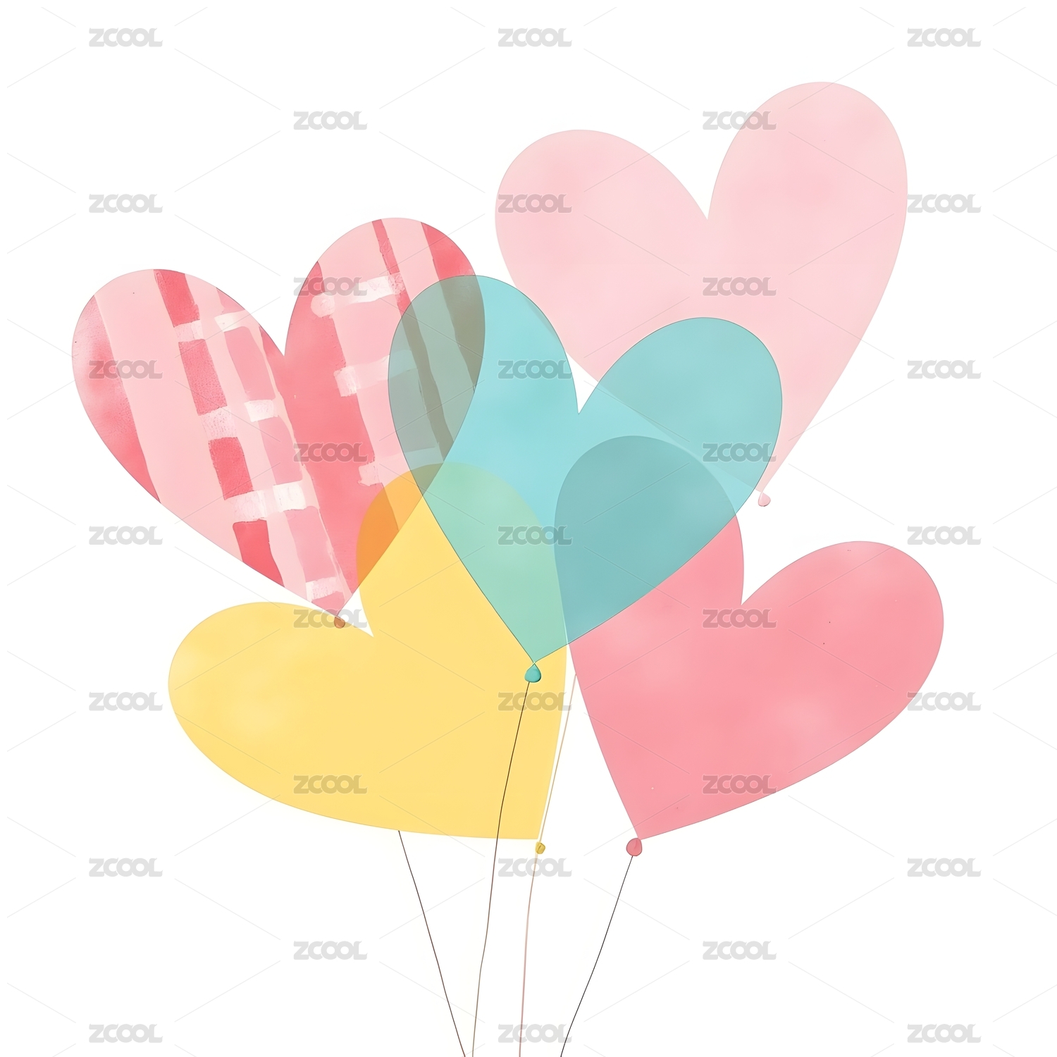 水彩爱心气球