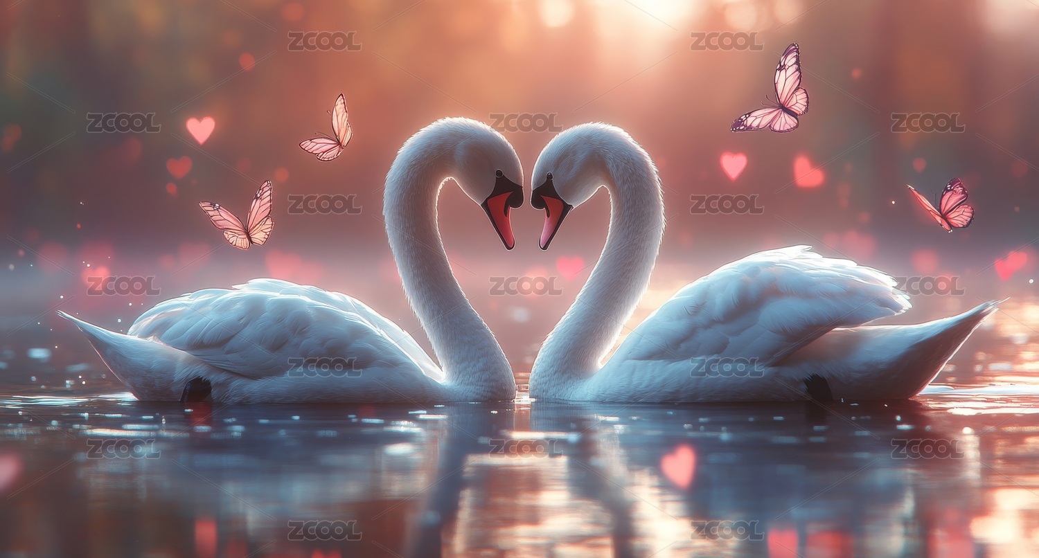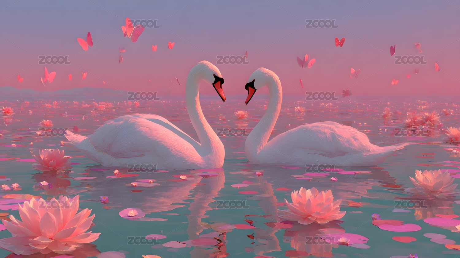粉色浪漫天鹅湖 爱意绵绵唯美画面