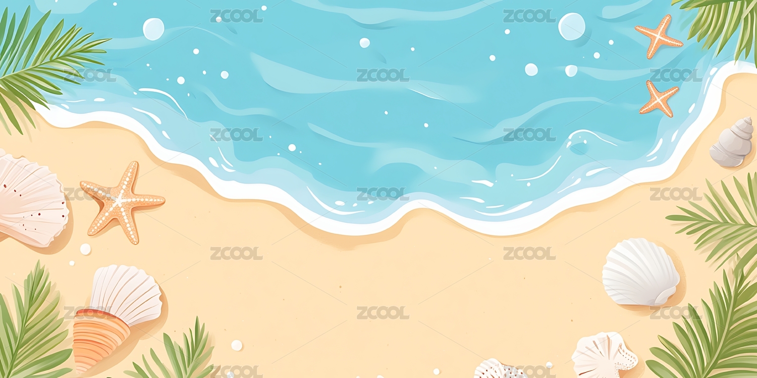 浪漫,海浪,水彩,粉色,蓝色,梦幻,白色,橙色,海洋,贝壳