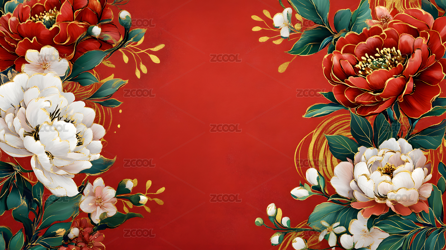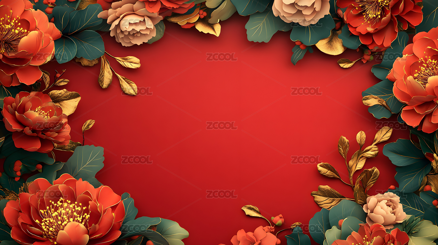 鲜花花环插画,感恩节快乐,带金色花环的卡