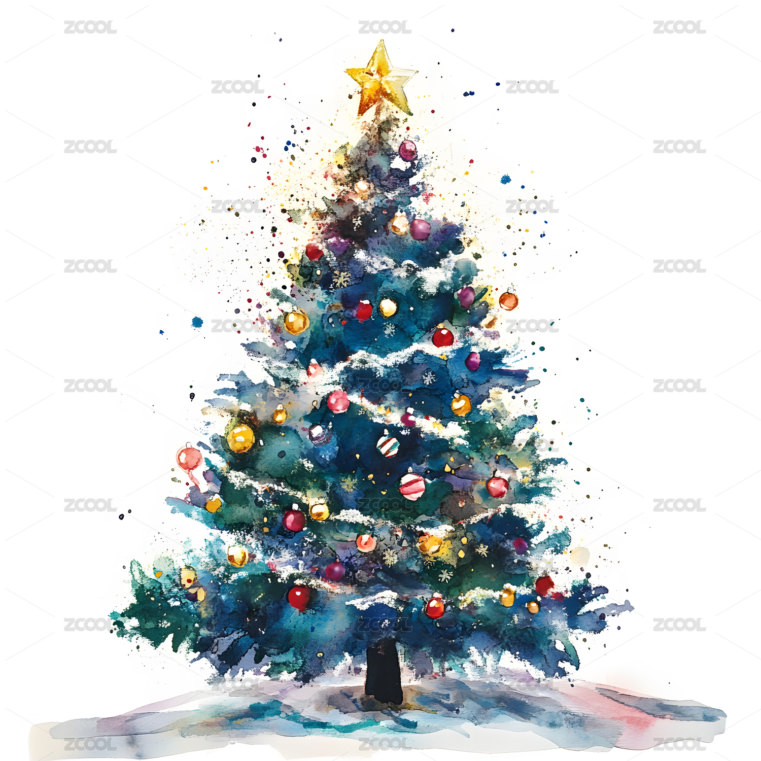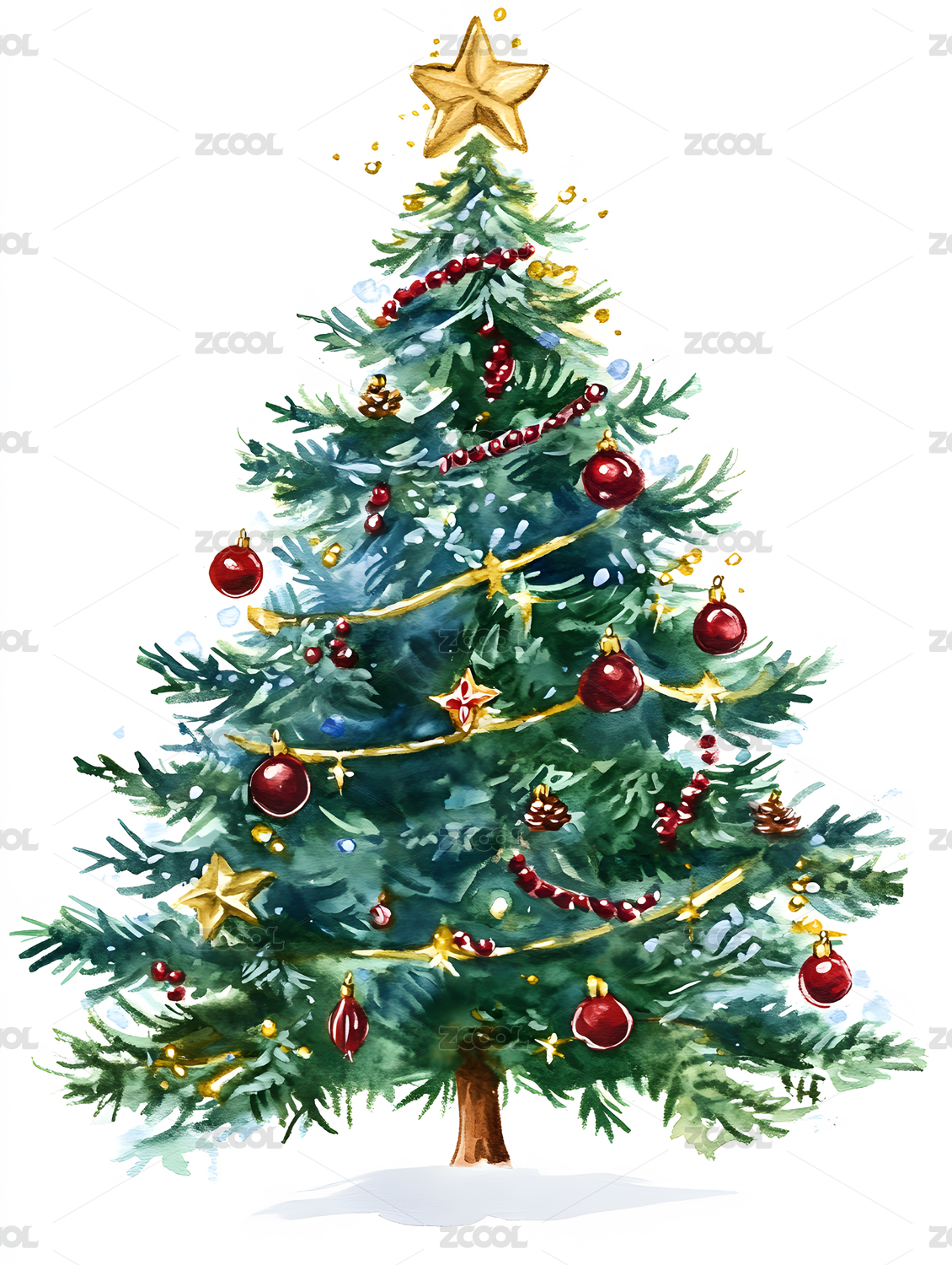 水彩风格圣诞树装饰