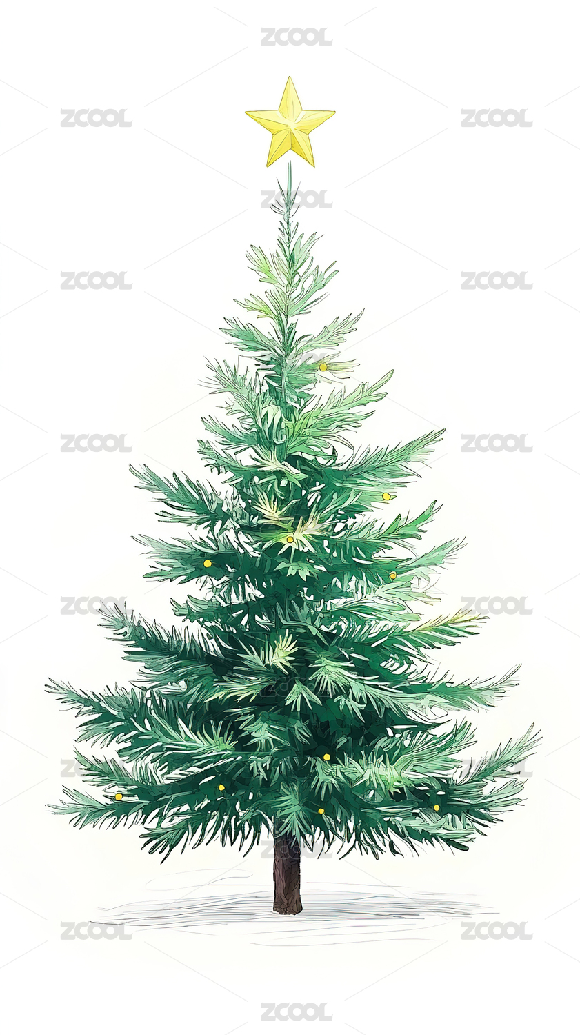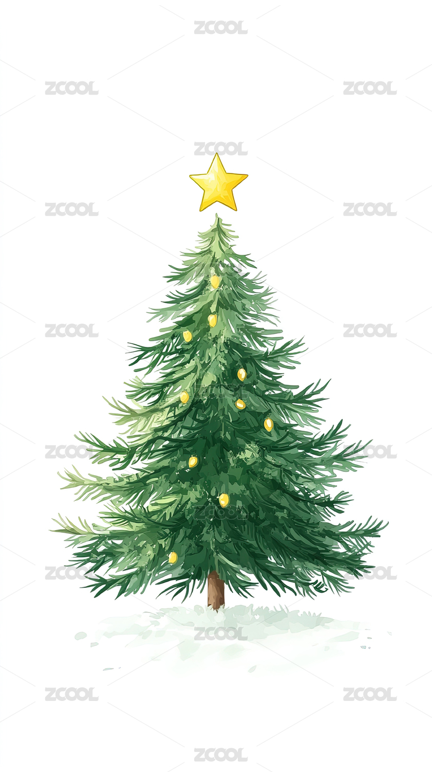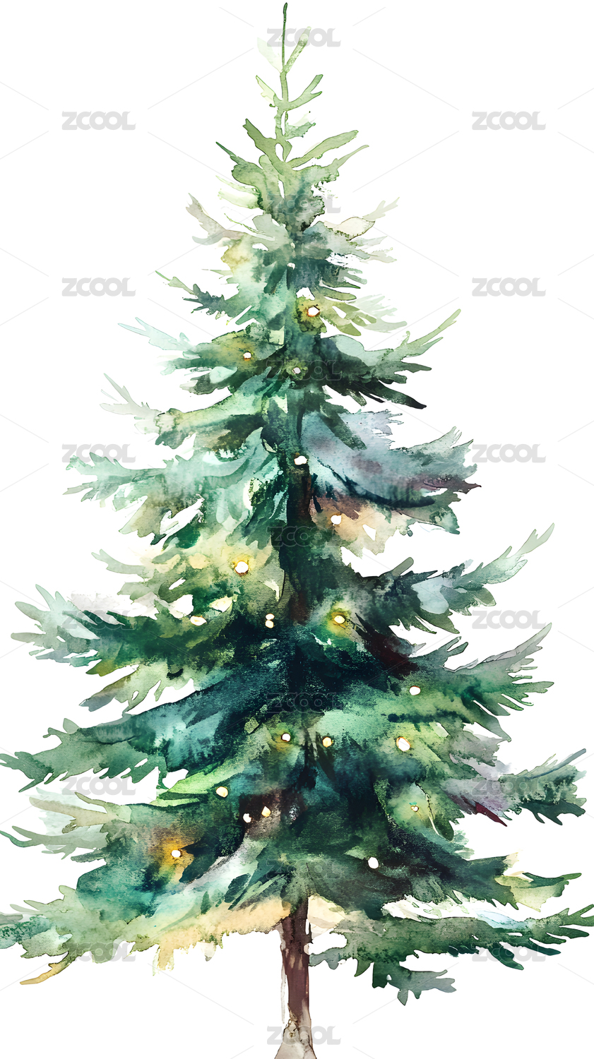 水彩风格圣诞树节日装饰画
