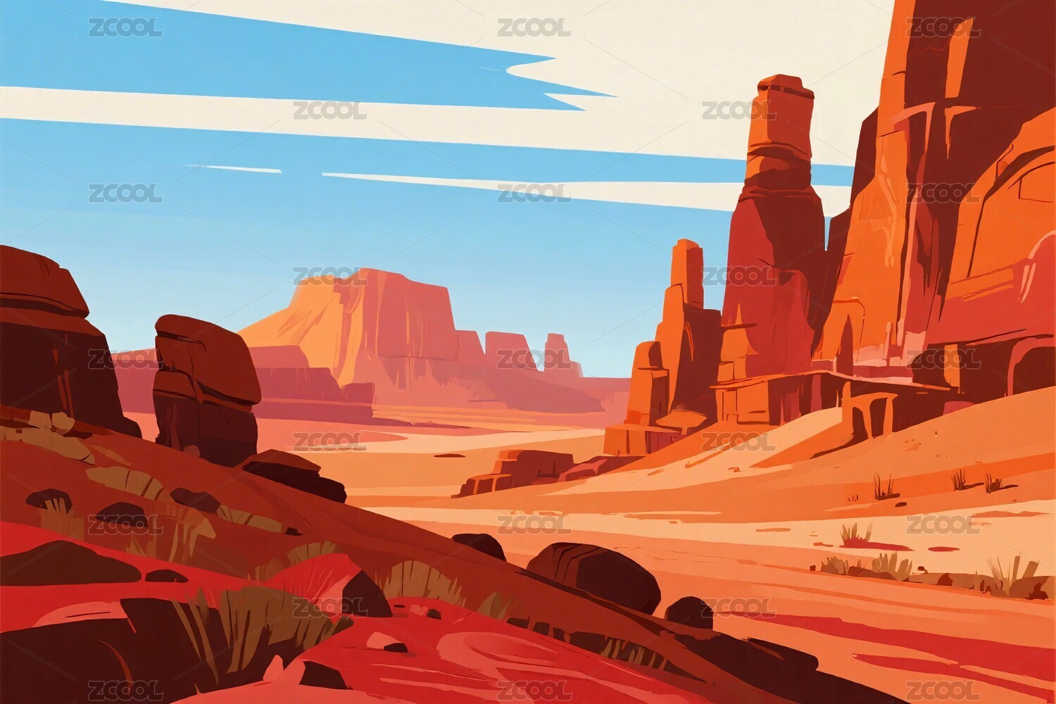 天山大峡谷乌鲁木齐热门城市旅游景点插画明