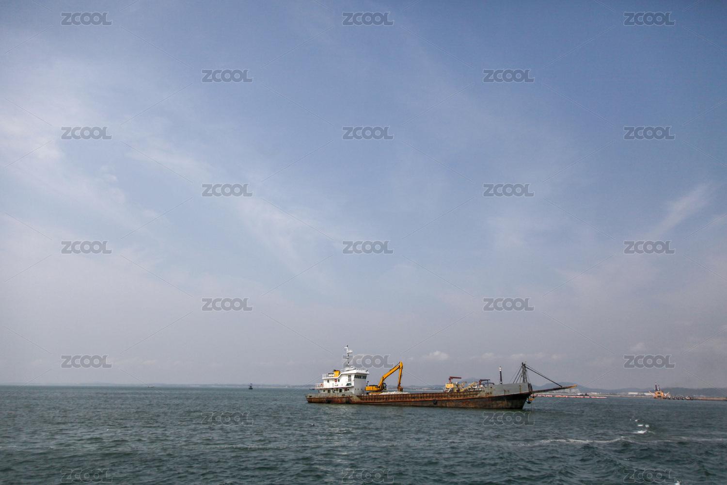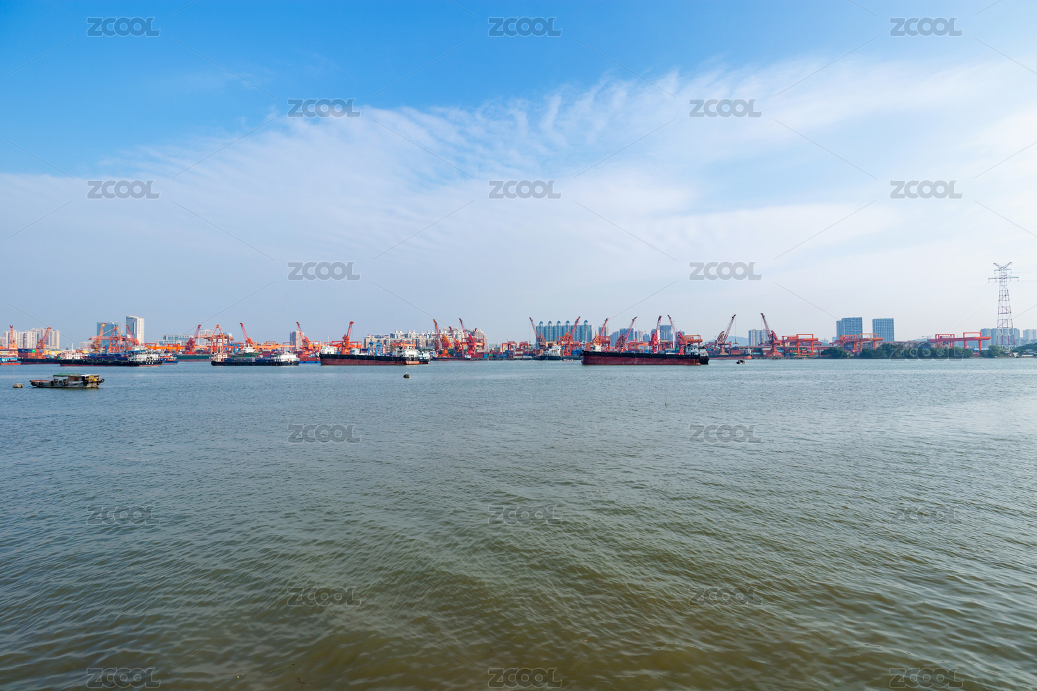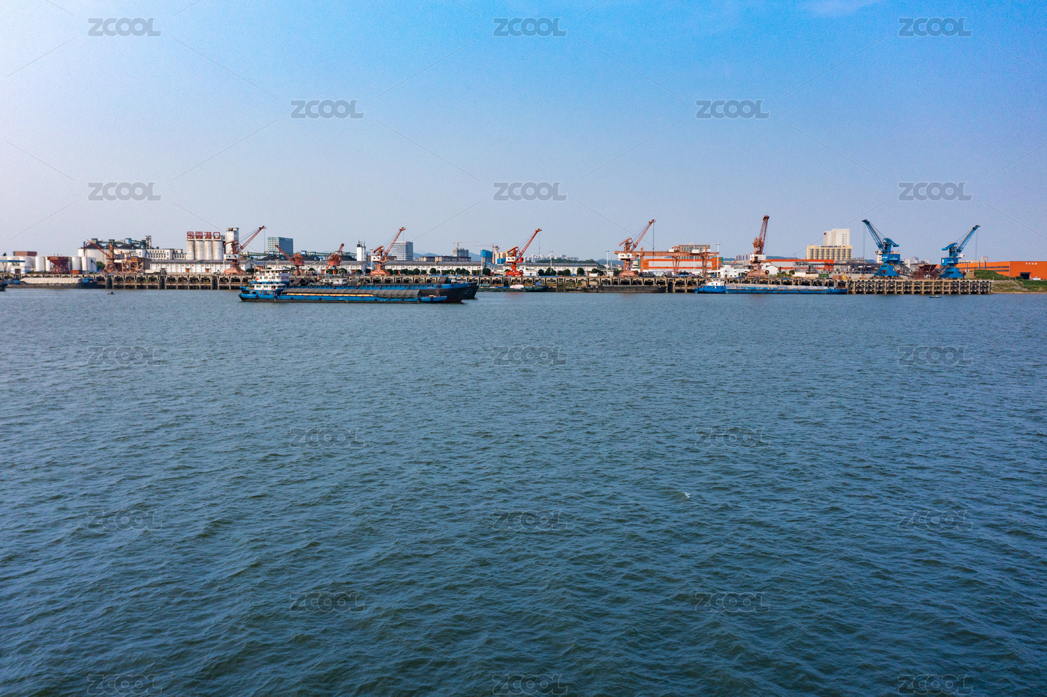 中国江苏无锡江阴长江造船厂码头江堤晚霞风光