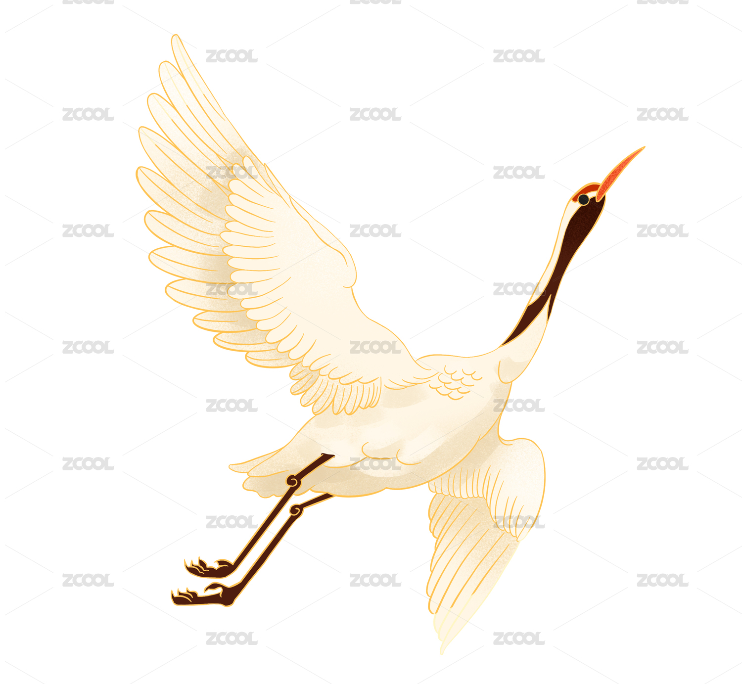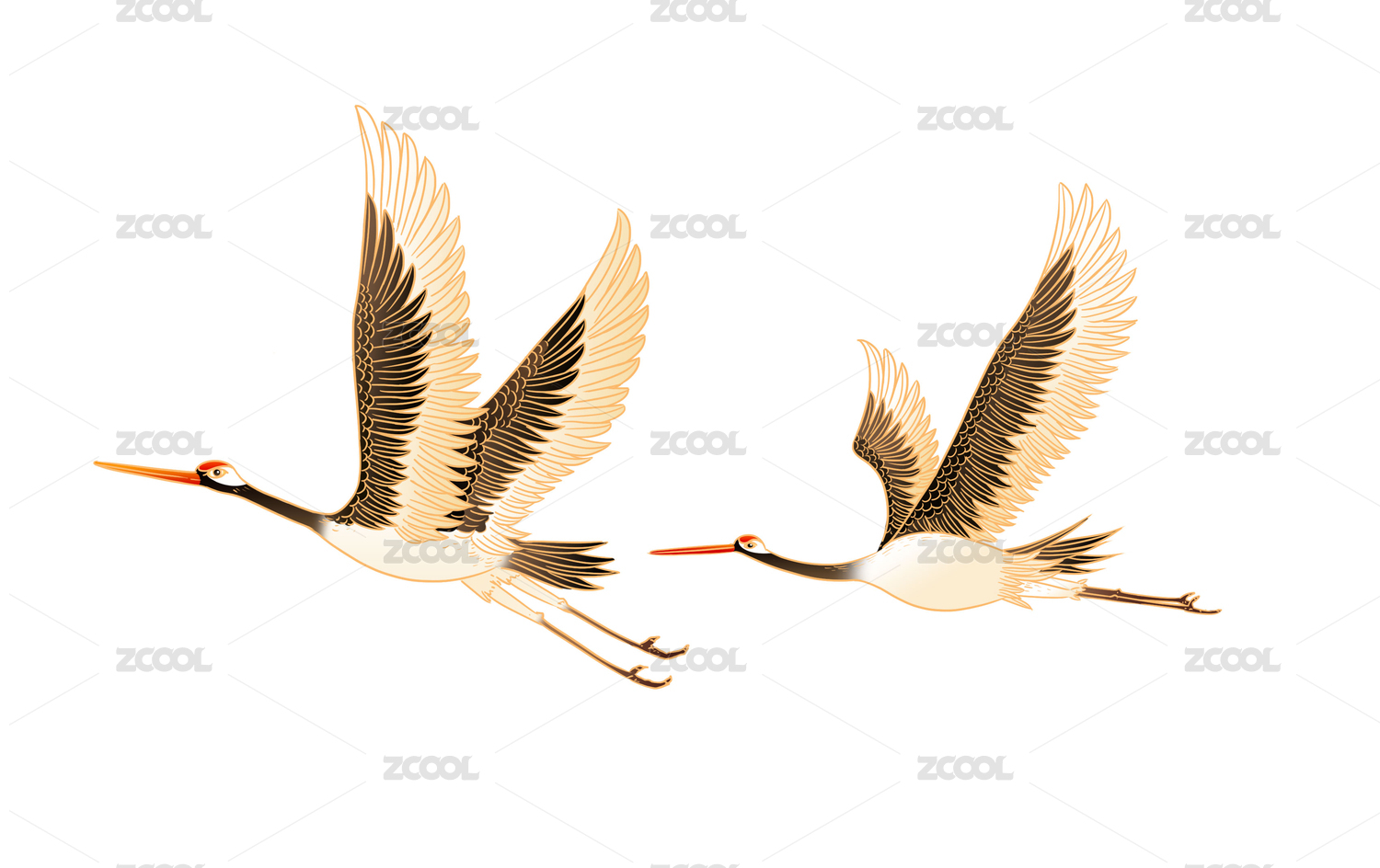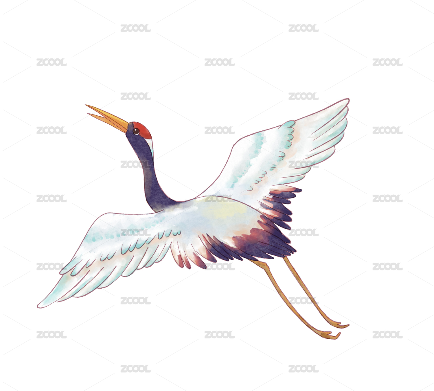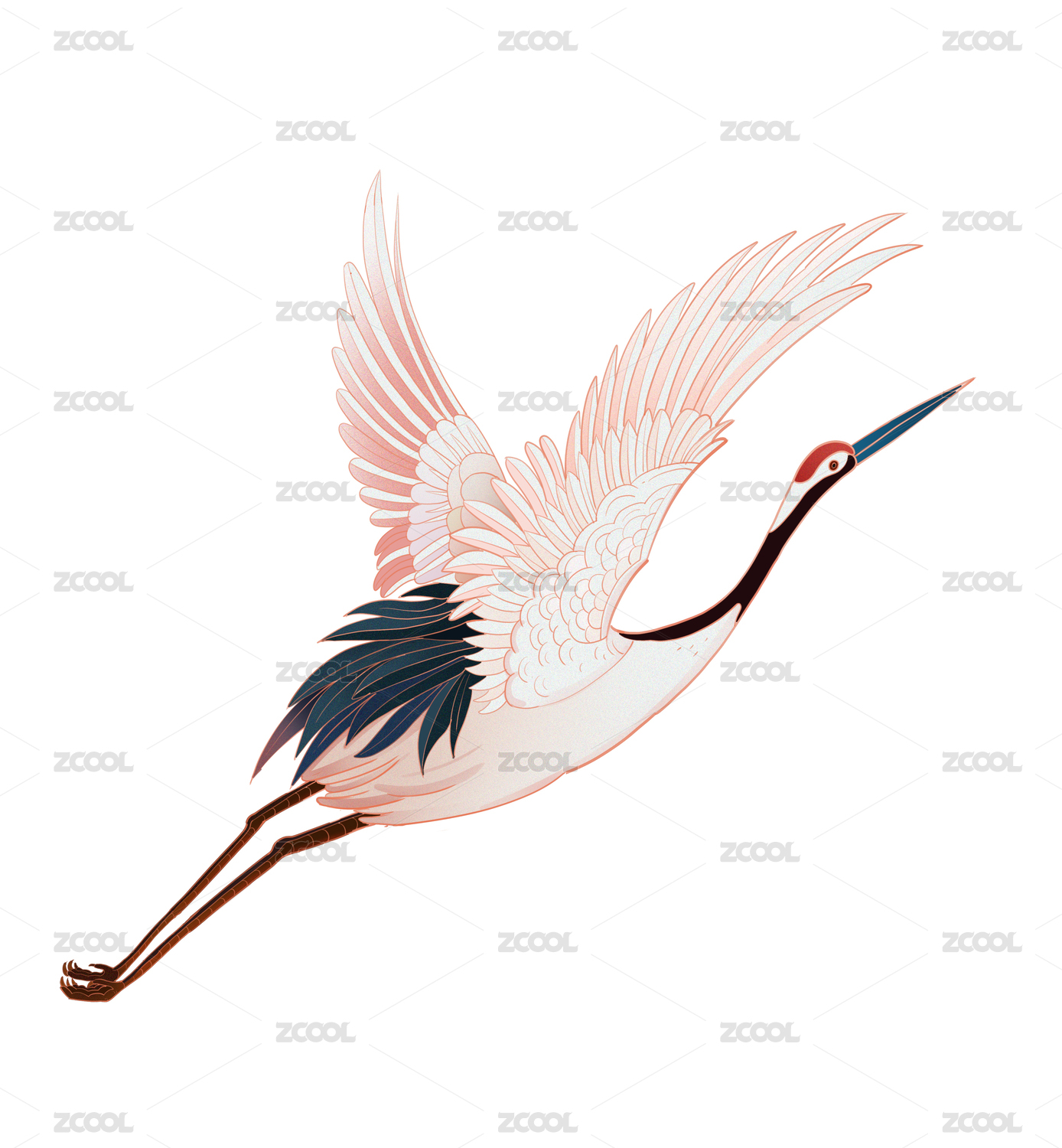 仙鹤丹顶鹤新中式清新国风透明底元素