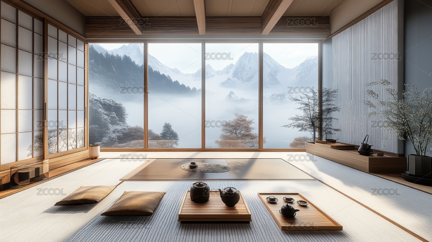 简约,舒适,木质,设计,自然,空间,宁静,禅意,窗景,日式