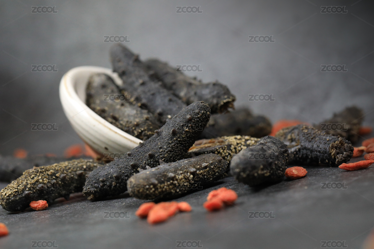 海参,黑色,晒干,干货,海鲜,暗色调,棕色木纹桌面,木碗