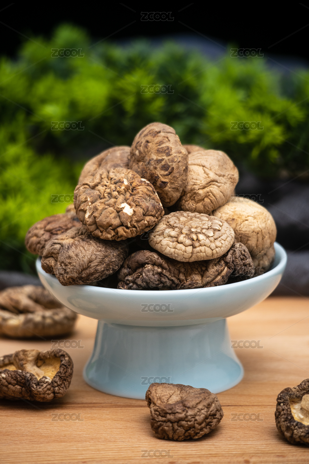 桌面盘子摆放晒干脱水的干香菇菌菇干货